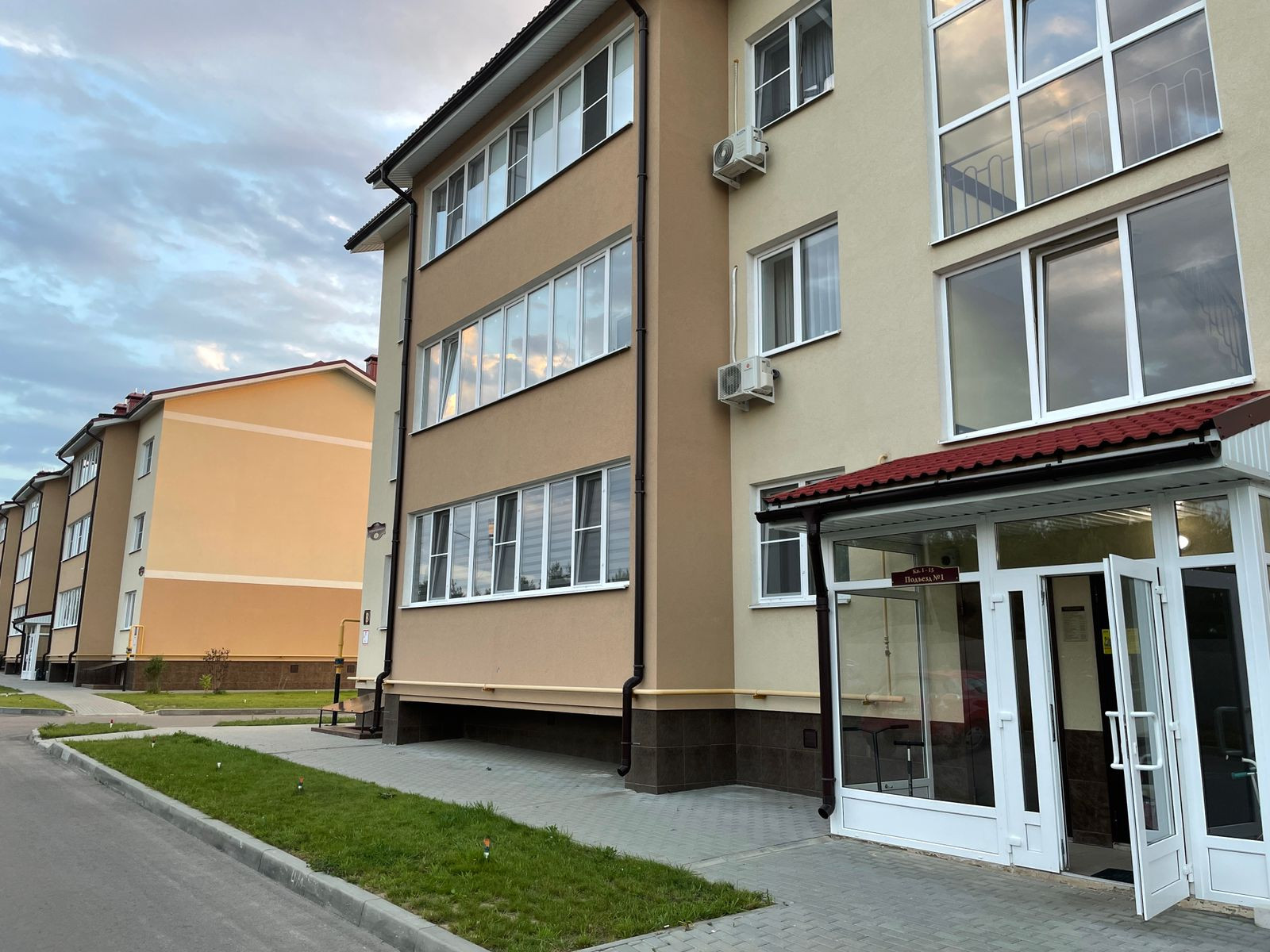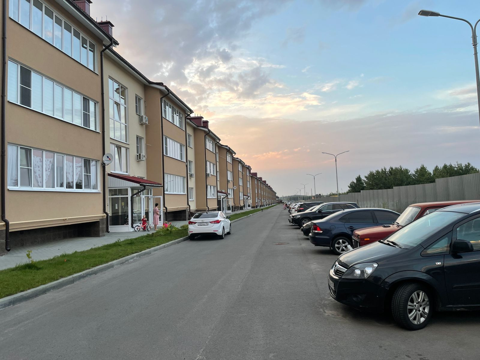 Много парковочных мест. Около дома детская и спортивная площадки, несколько зон для гриля, "зеленый" сквер.