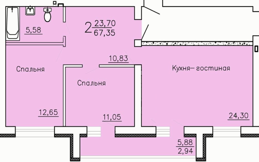 Общая площадь 67.3 м2