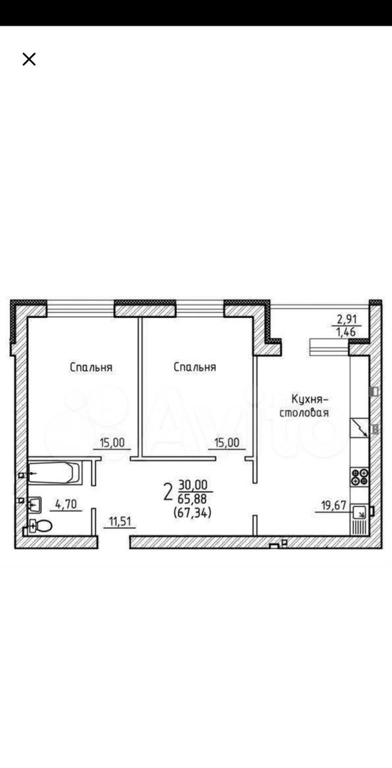 Общая площадь 68 м2