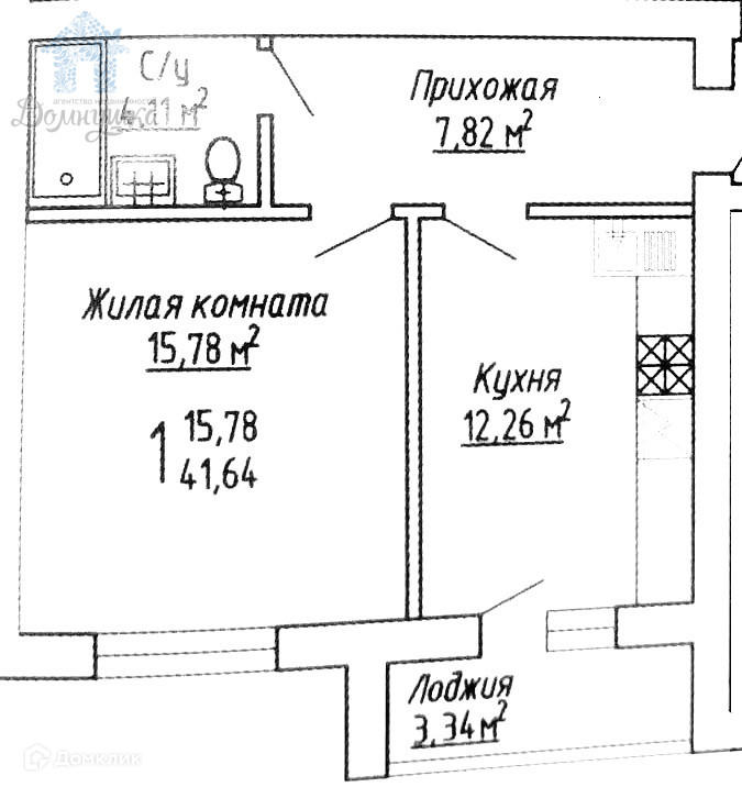 Общая площадь 41.64 м2