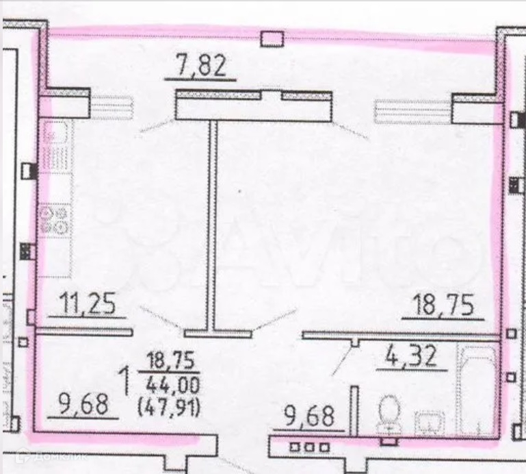 Общая площадь 47.9 м2