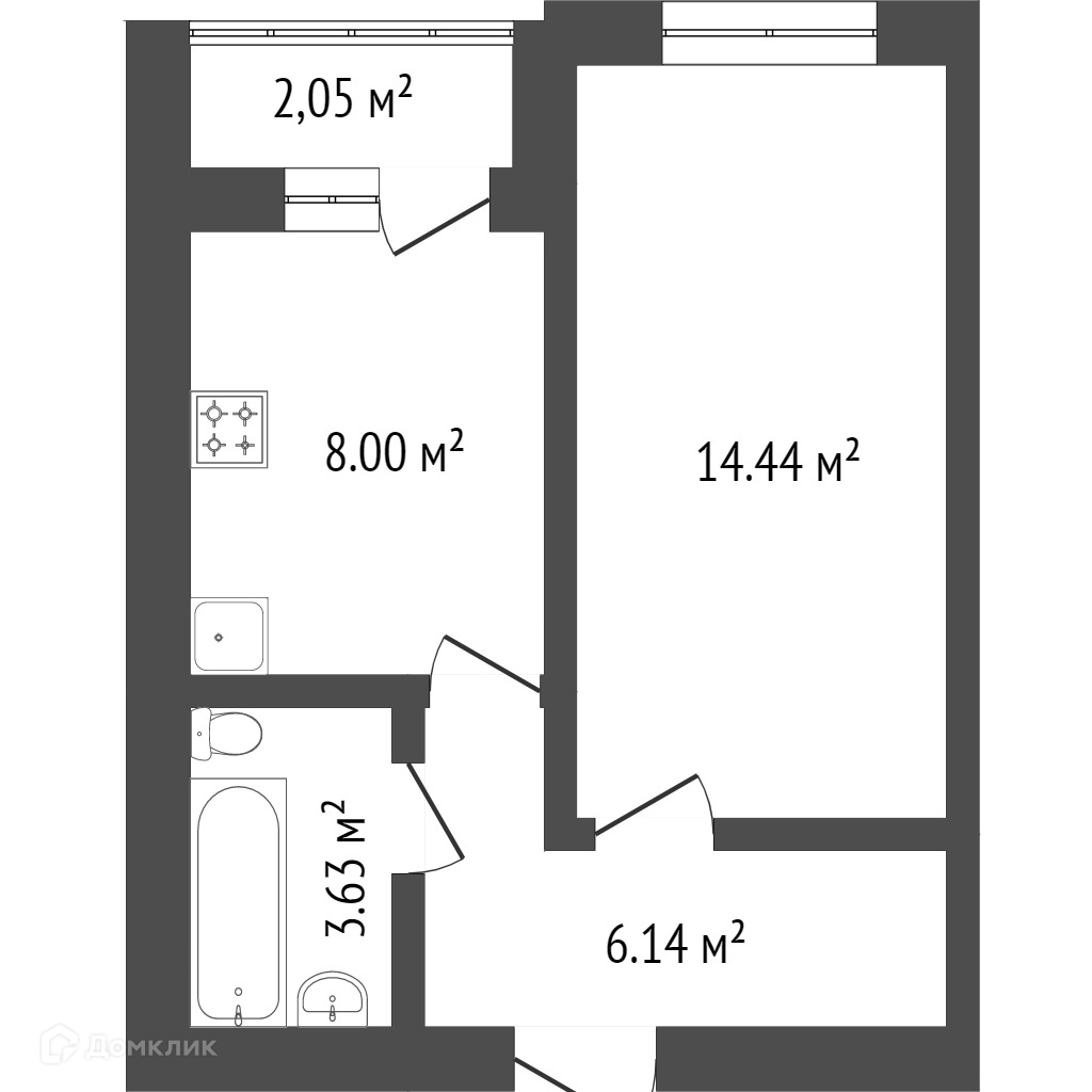Общая площадь 37.9 м2