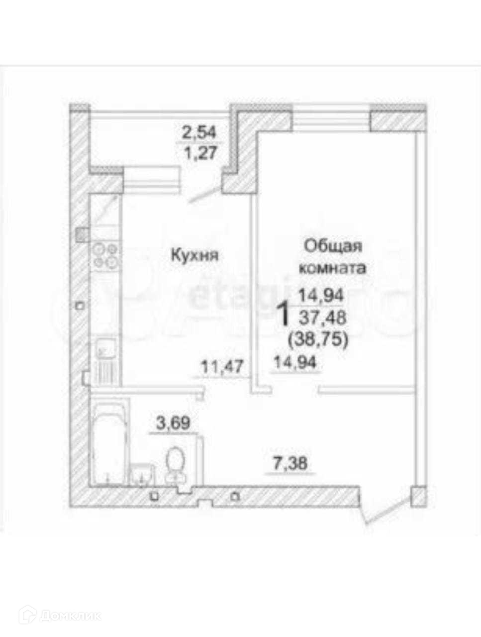 Общая площадь 37.9 м2