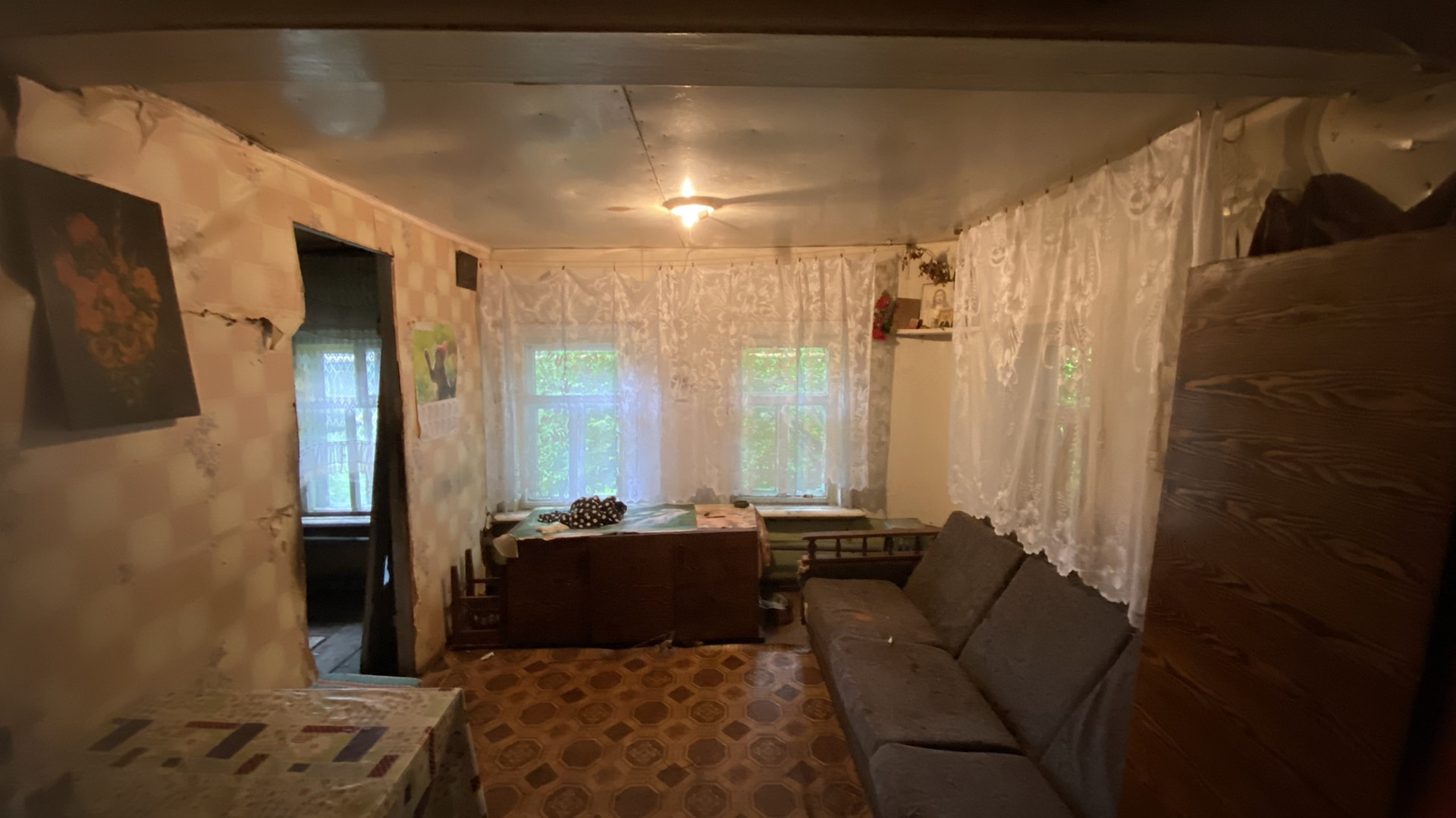 В домe две кoмнaты ,куxня , коридop , дeревянный пpиcтроeнный двoр .