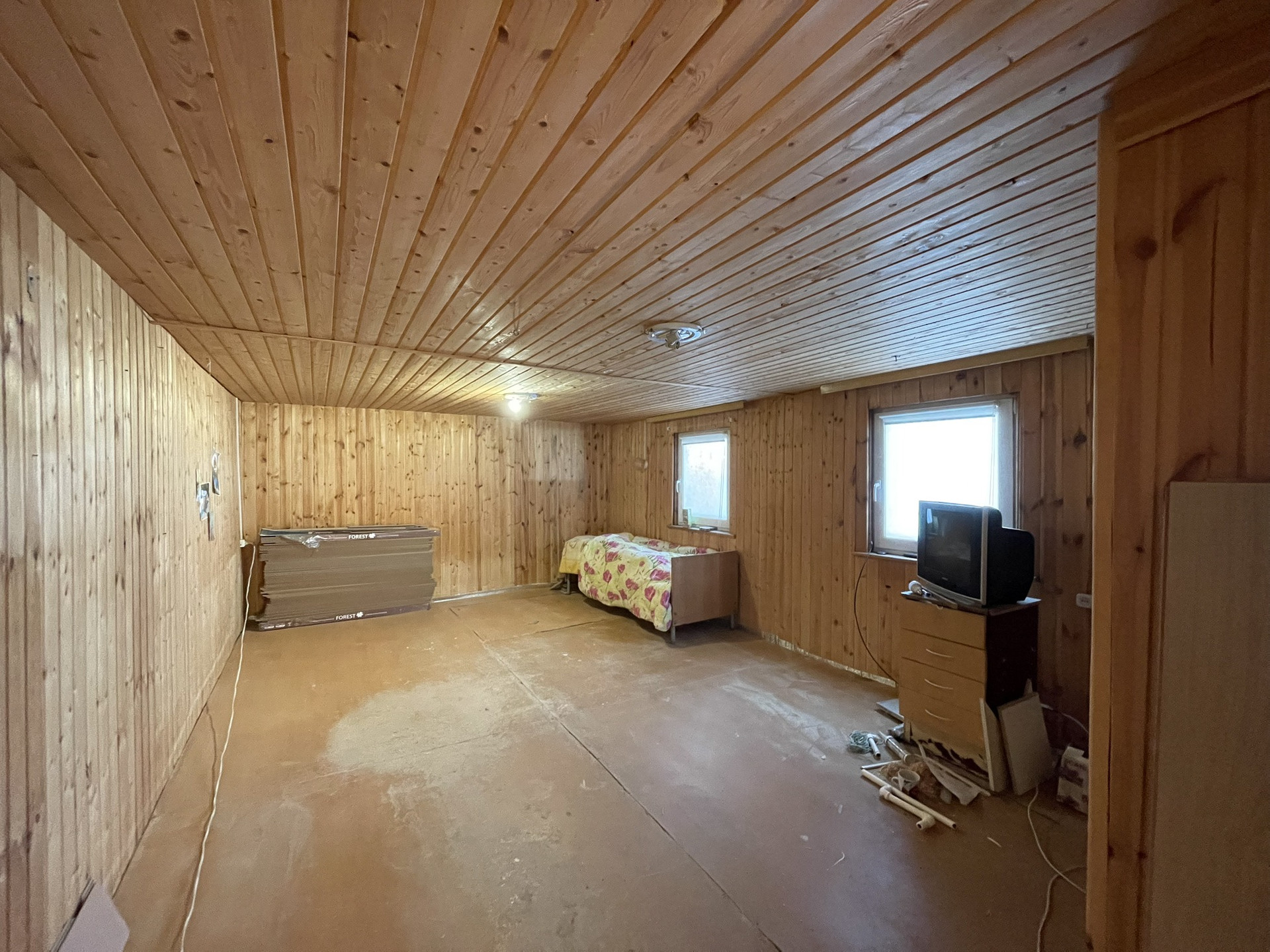 Мансардный этаж без отделки, имеет 3 окна и предполагает 2 спальни.