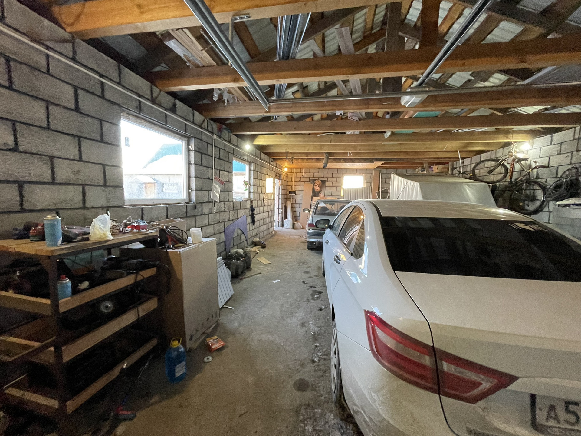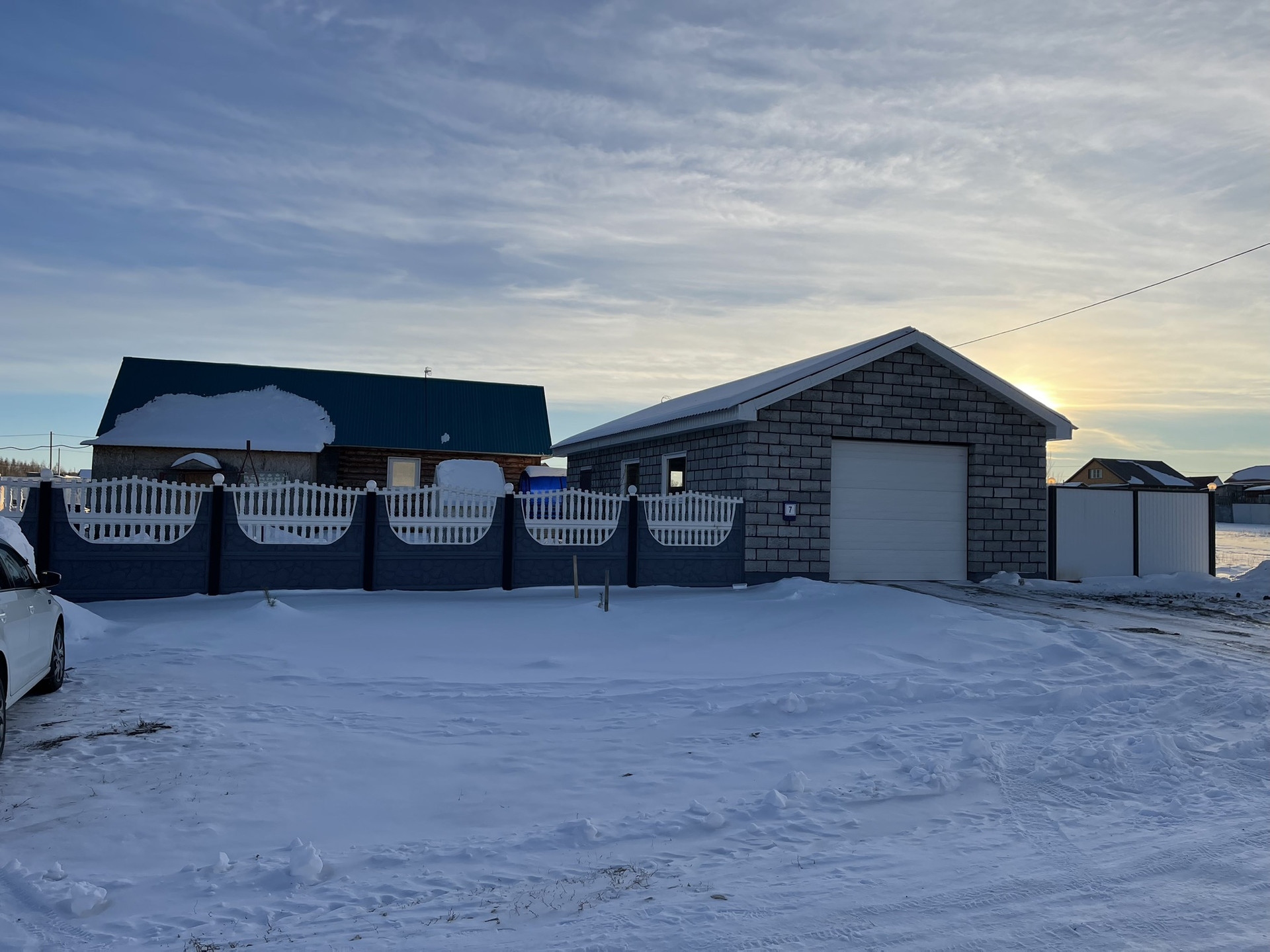 Во дворе гараж из шлакоблока 6х12 метров, позволяет разместить до 4 автомобилей, имеет автоматический привод ворот, баня пристроена к летнему домику с кухней, топка вынесена в отдельное помещение, участок огорожен. Дорожки во дворе выложены тротуарной плиткой.