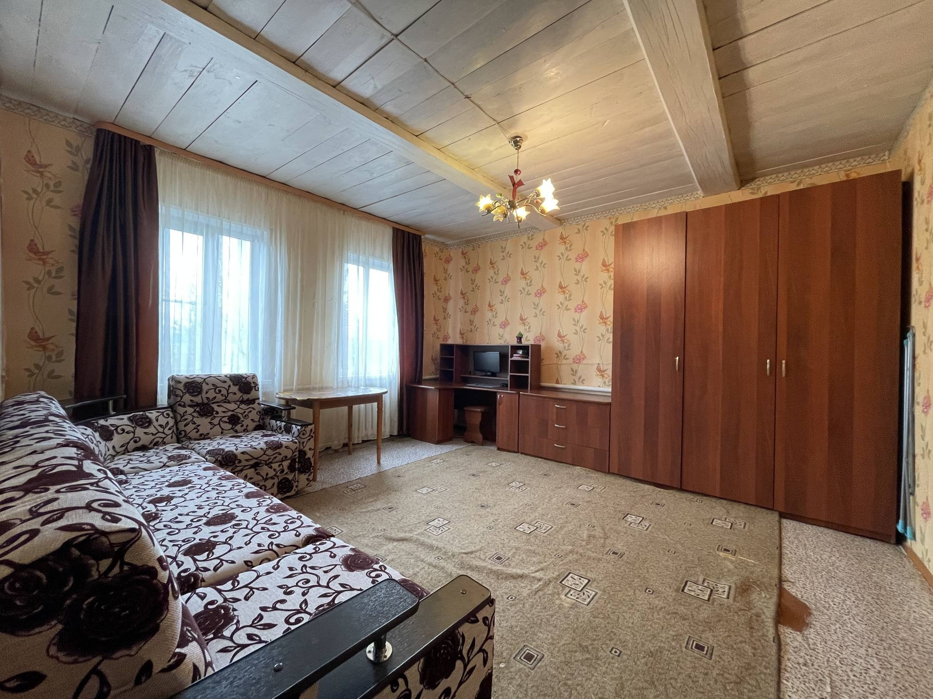 Дом построен из сруба, обшит сайдингом. Сделан капитальный ремонт, окна новые, сети заменены, полы не скрипят. ​В доме две спальни, гостиная, кухня.