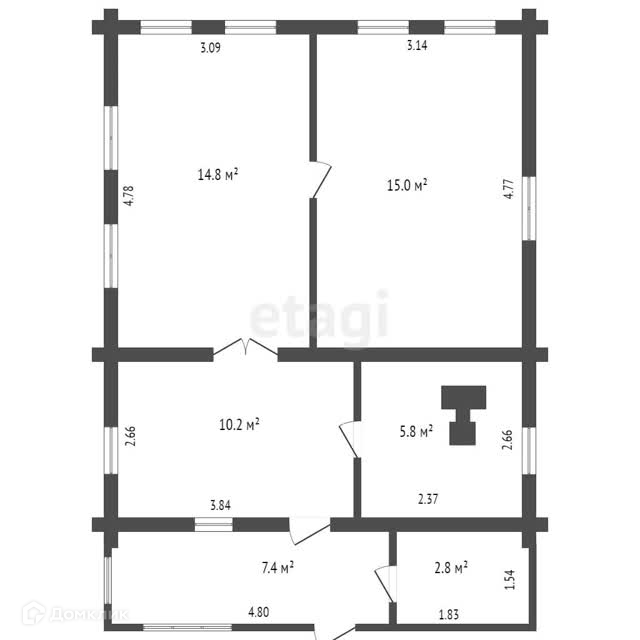 Общая площадь 45.8 м2