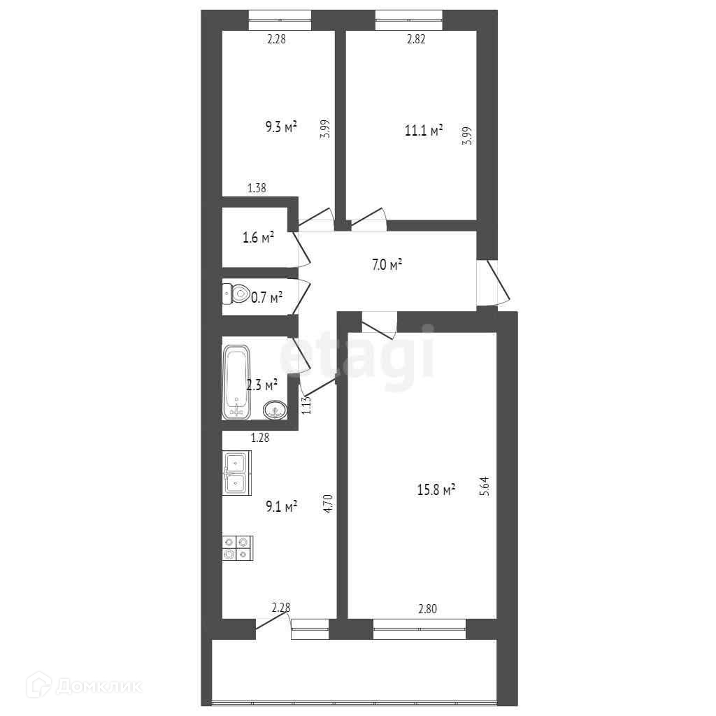 Общая площадь 58 м2