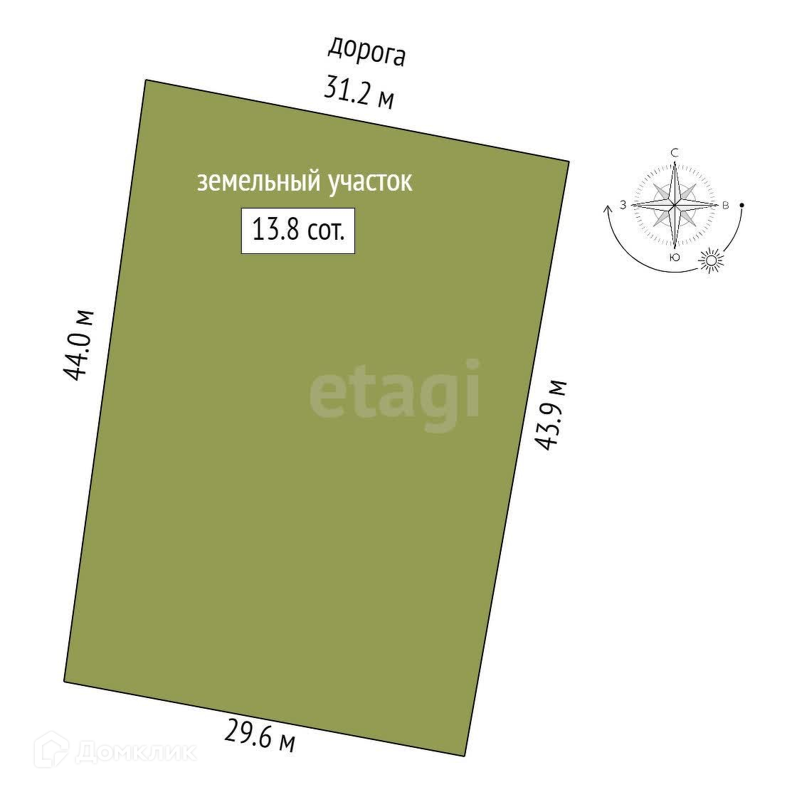 Площадь участка 13.8 сот.