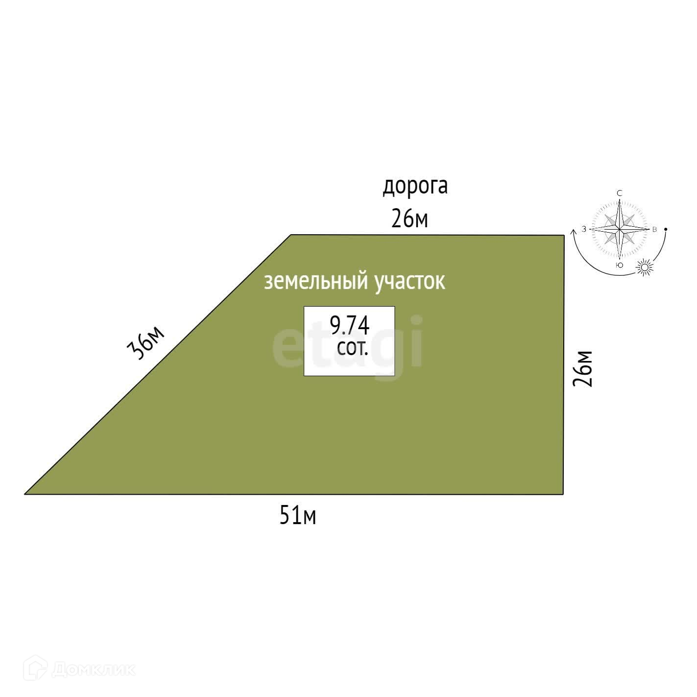 Площадь участка 9.7 сот.