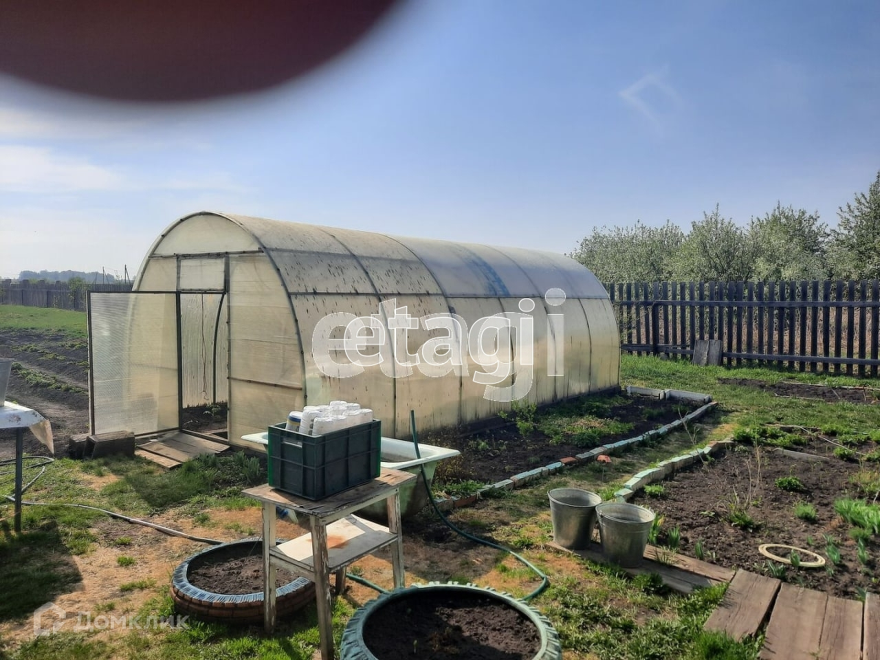 На земельном участке расположено: отличная баня, сарай, погреб, беседка для отдыха. Весь участок, на котором растет множество насаждений (вишня, яблони, смородина, виктория и многое другое), огорожен деревянным забором.