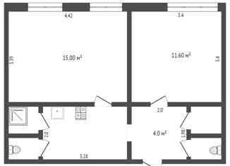 Общая площадь: 34.3 м2