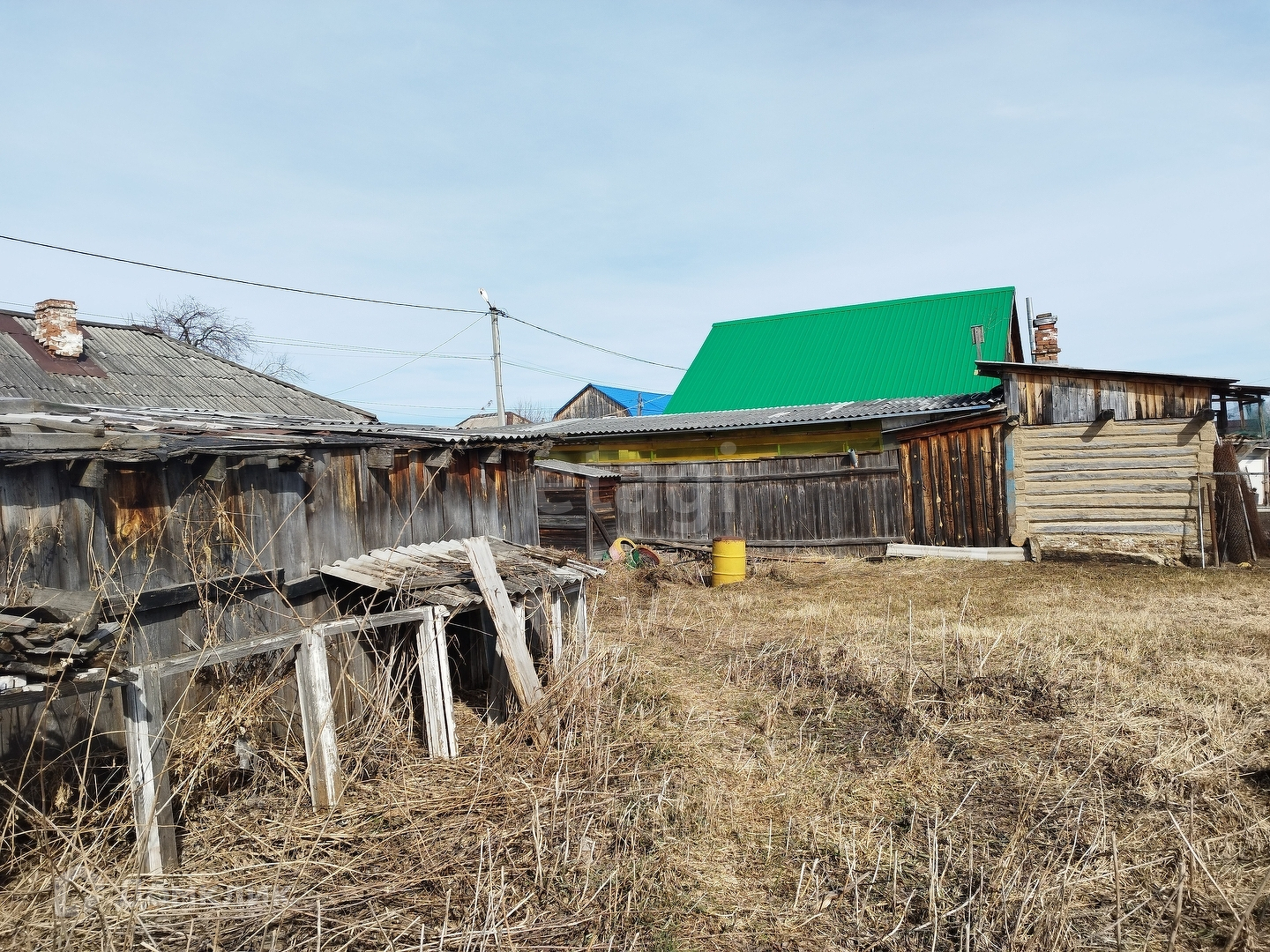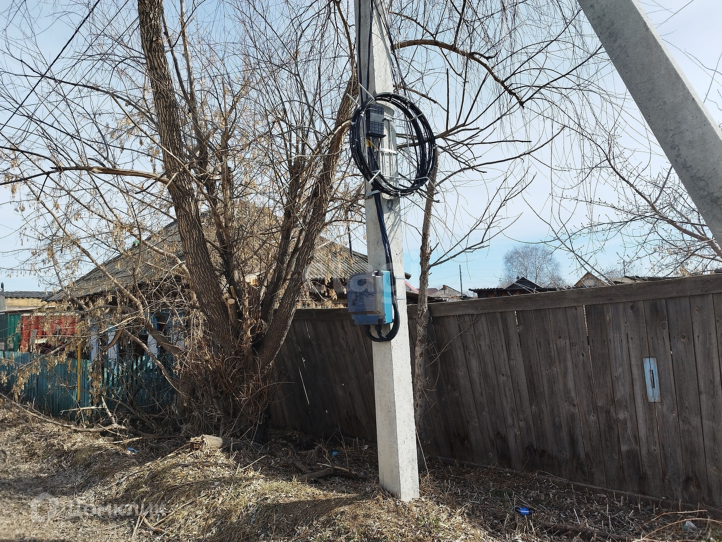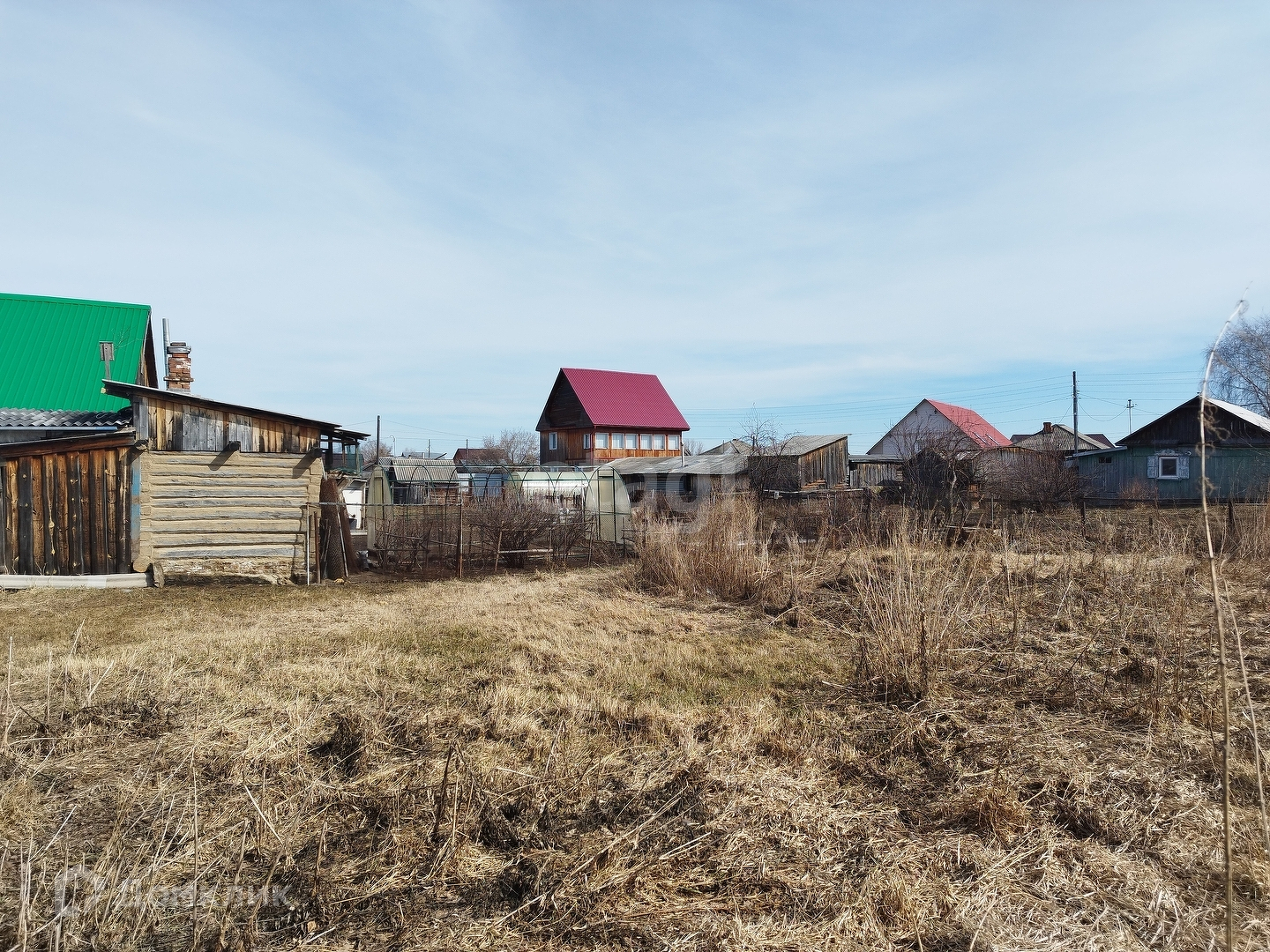 К участку подведён газ, электричество, можно завезти центральное водоснабжение. Участок огорожен деревянным забором, расположен старый дом, банька и дворовые постройки.