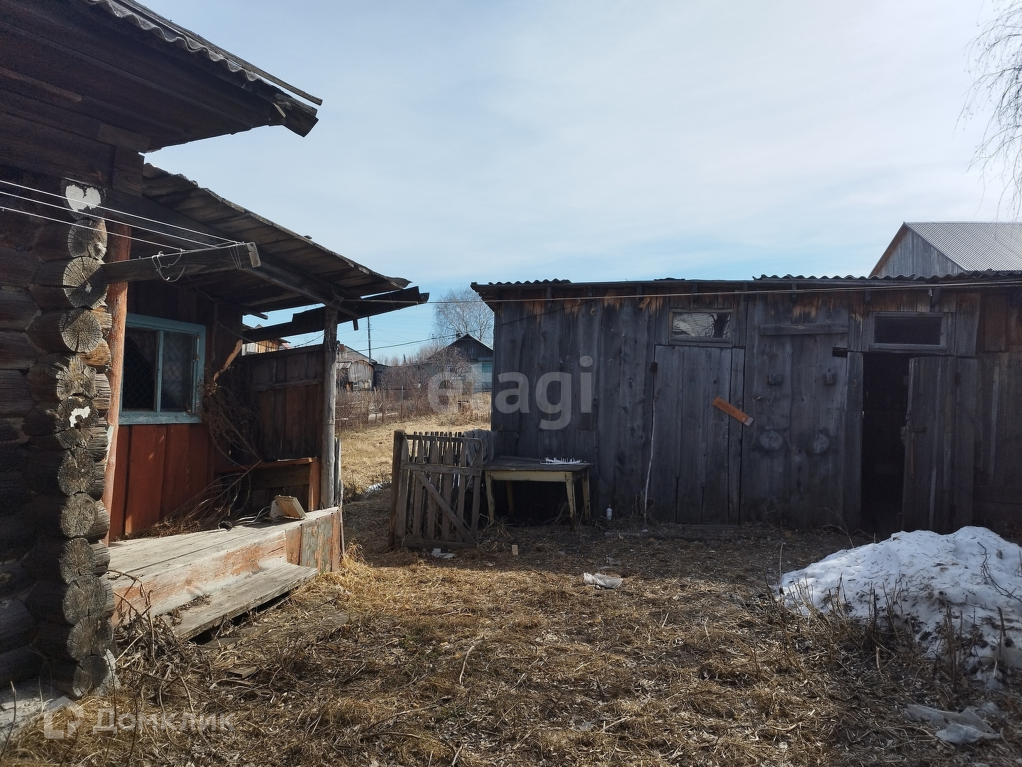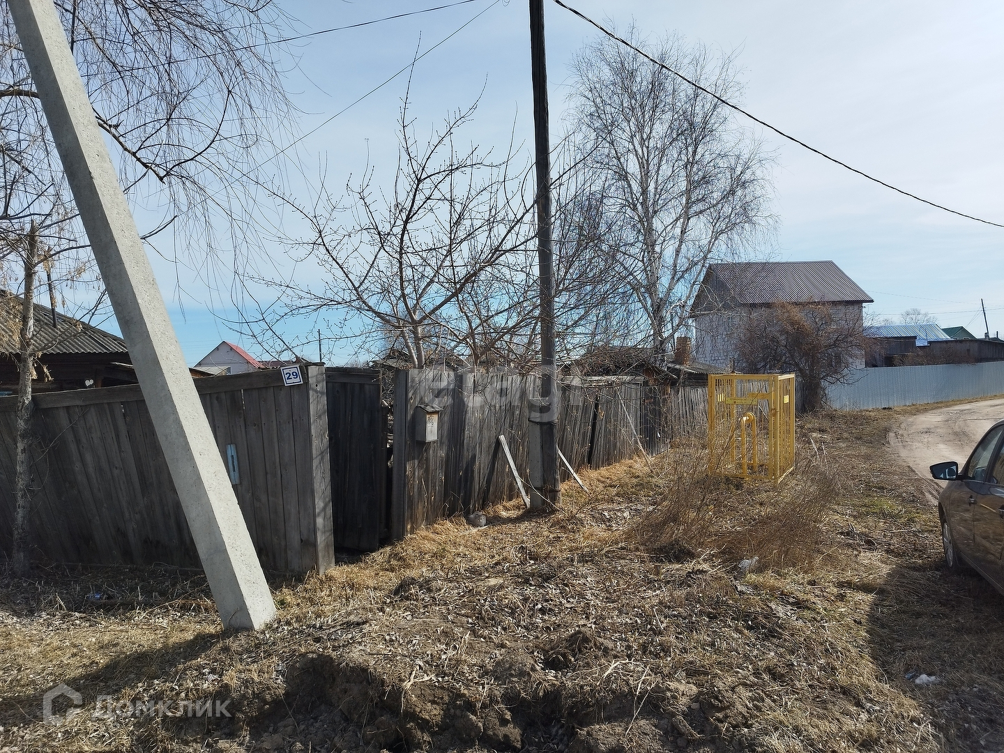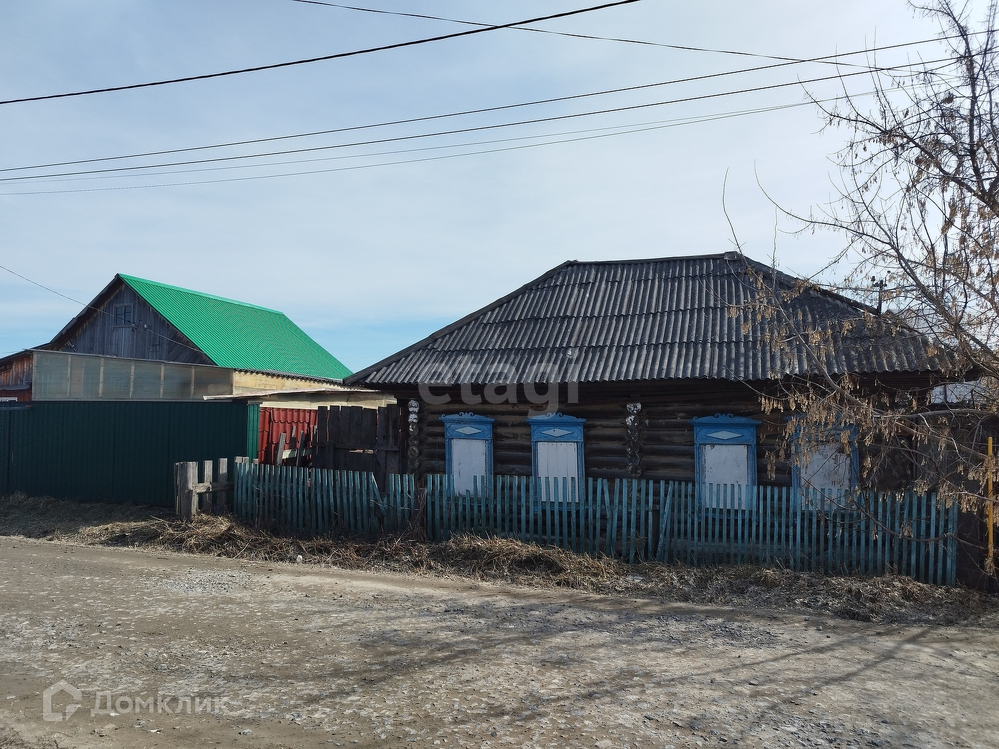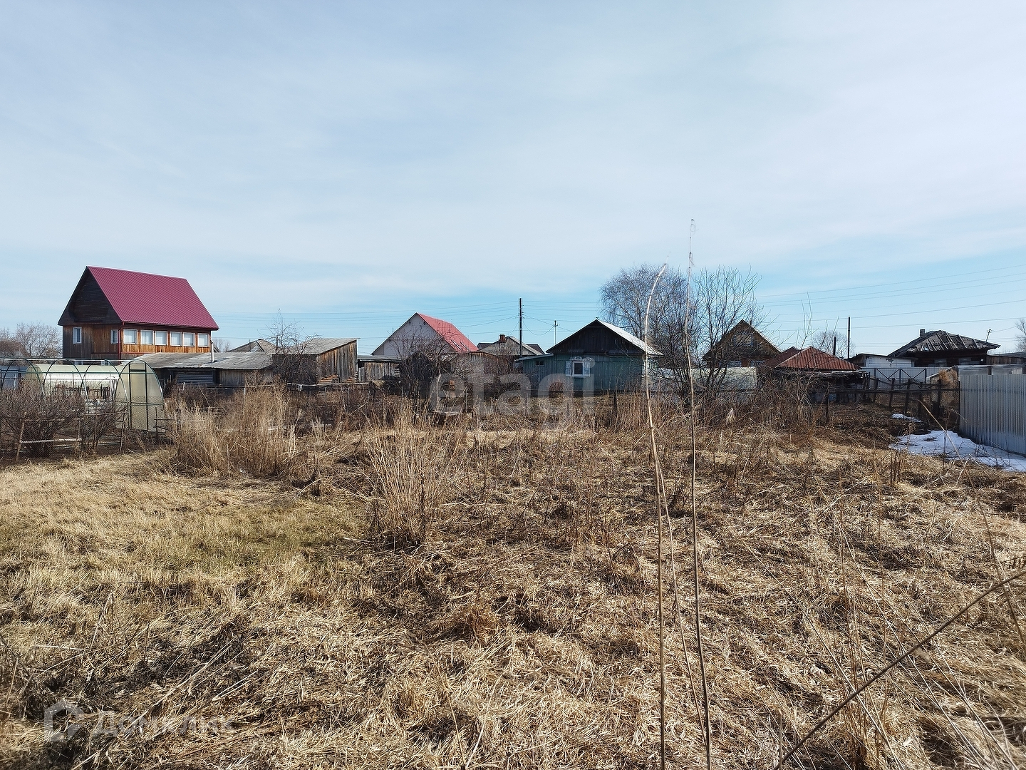 К участку подведён газ, электричество, можно завезти центральное водоснабжение. Участок огорожен деревянным забором, расположен старый дом, банька и дворовые постройки.