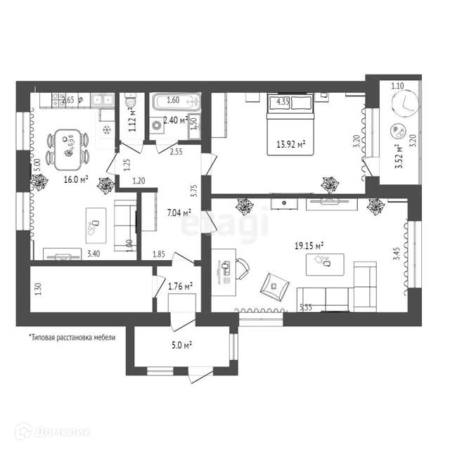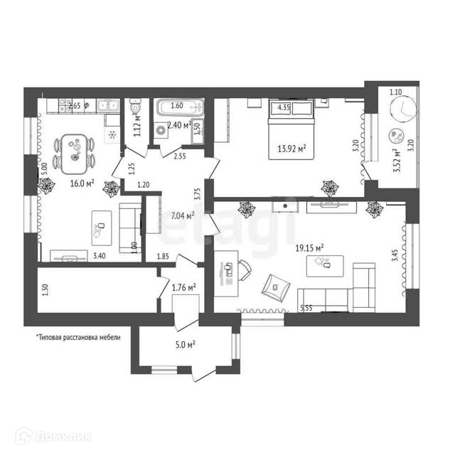 Общая площадь 60.8 м2