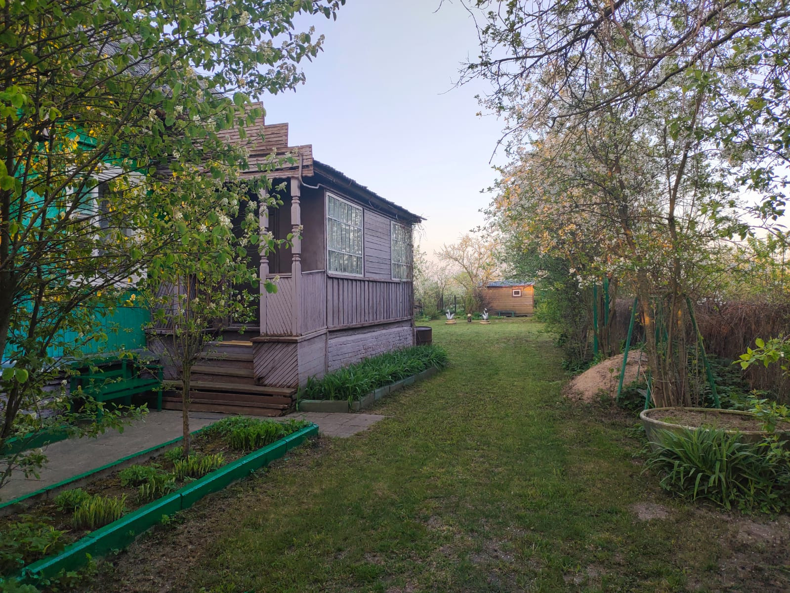 Дом продается на участке 15 соток. Территория огорожена забором. Земли плодородные, растут и дают плоды яблони, вишни, сливы, крыжовник, черная и красная смородина, различные виды цветов и кустарников. Также на участке располагаются благоустройства: сарай (зеленый) с разделением на 2 отсека хранения, летняя душевая, крытый легкий сарай, баня, беседка, качели, турник.