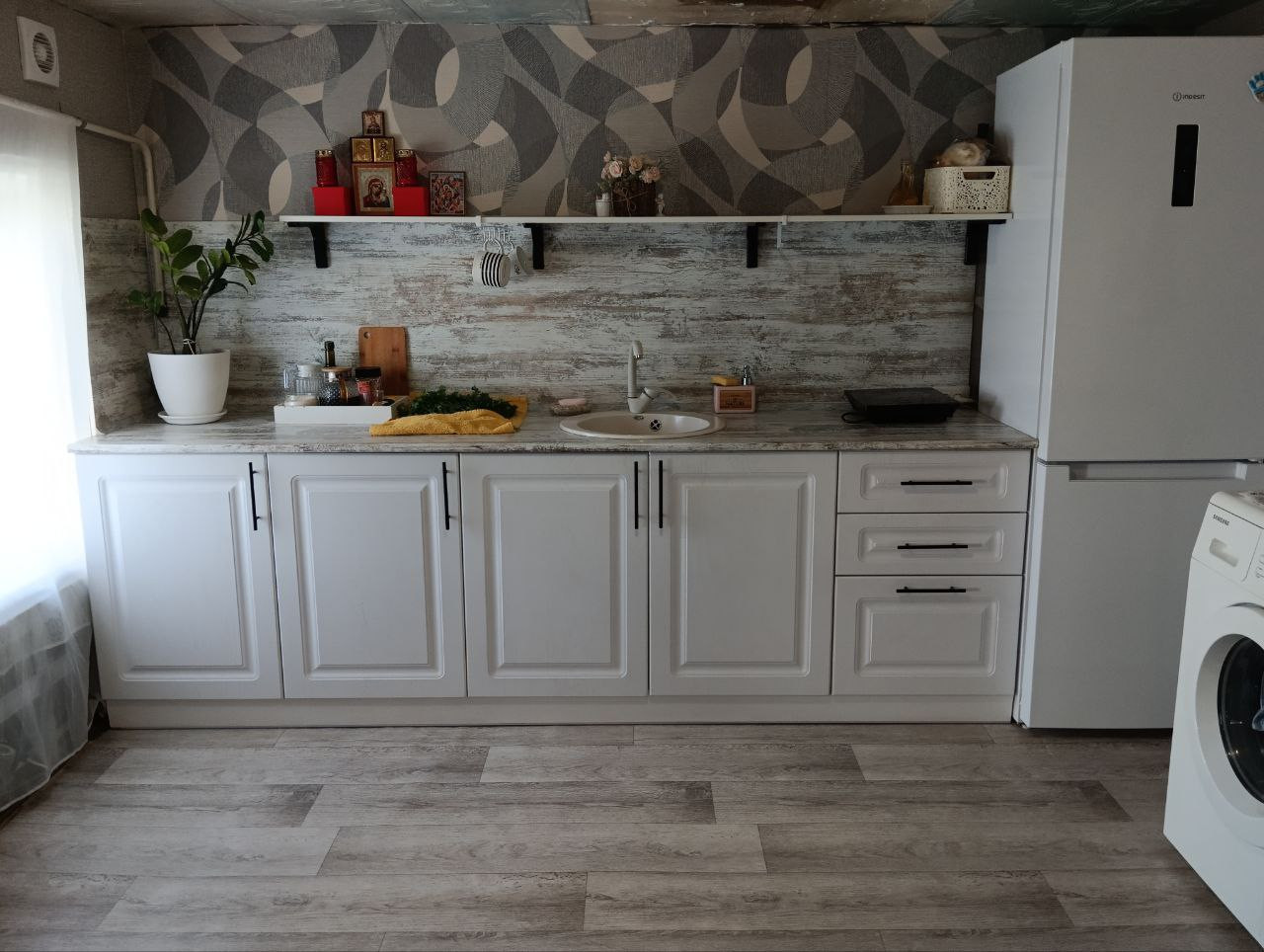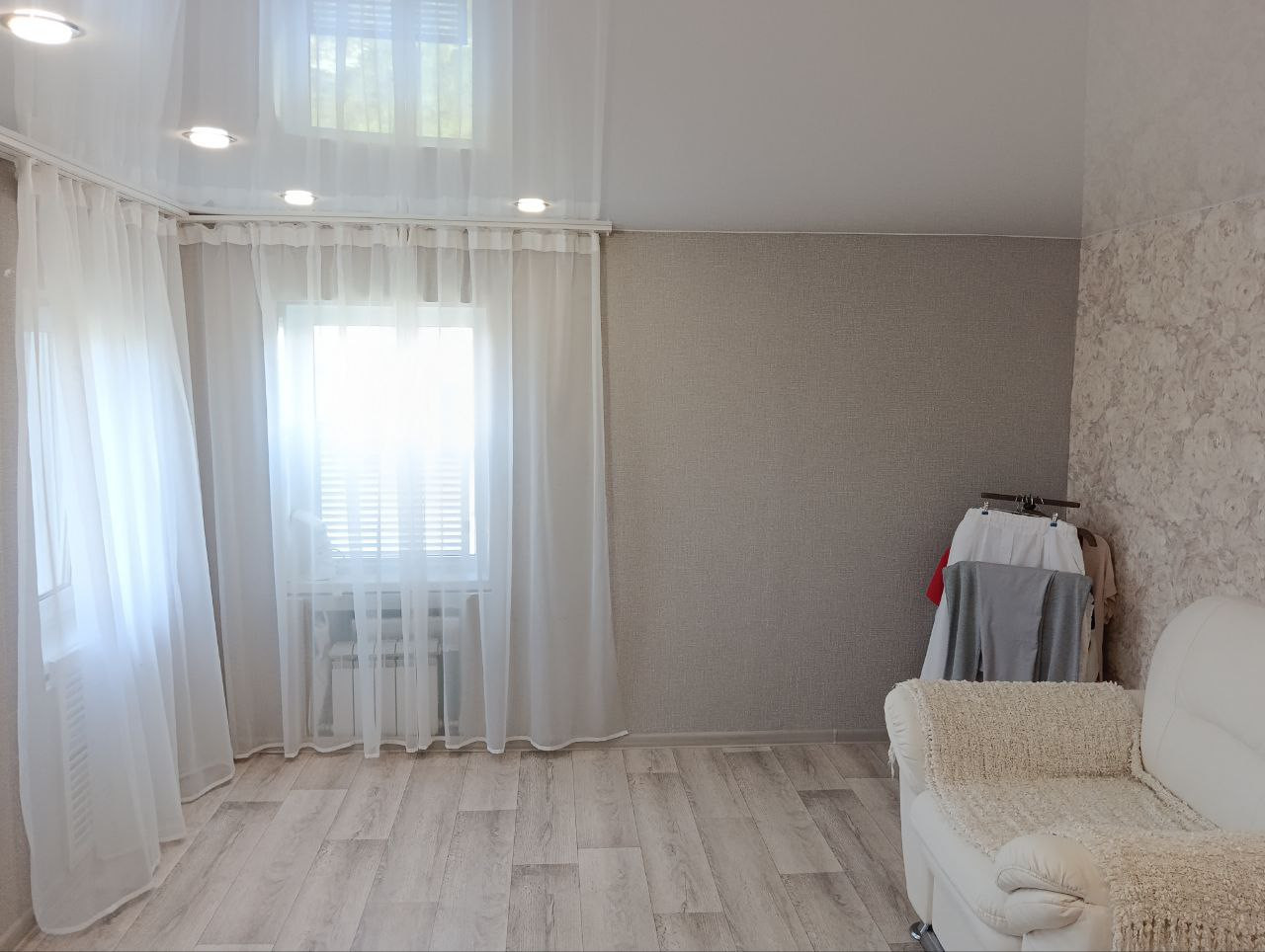 Дом очень светлый, с современным евро ремонтом. Окна все пластиковые, новые межкомнатные двери, напольное покрытие ламинат, натяжные потолки. Две комнаты, просторная кухня, площадью 10,73 кв. м, где можно собраться дружной семьей. Сан узел в доме.