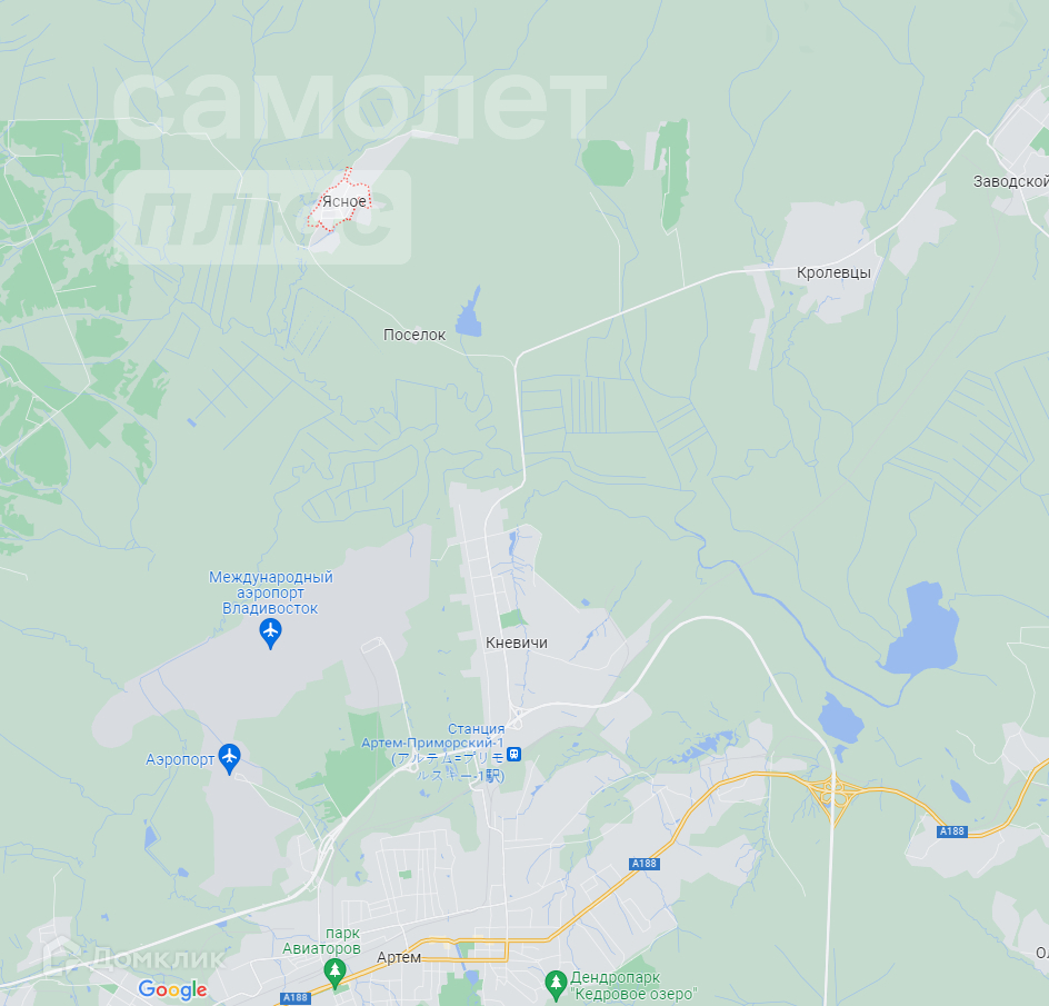 До города Артема 7 мин. на машине, до п. Заводской и с. Кневичи 3-5 мин.
