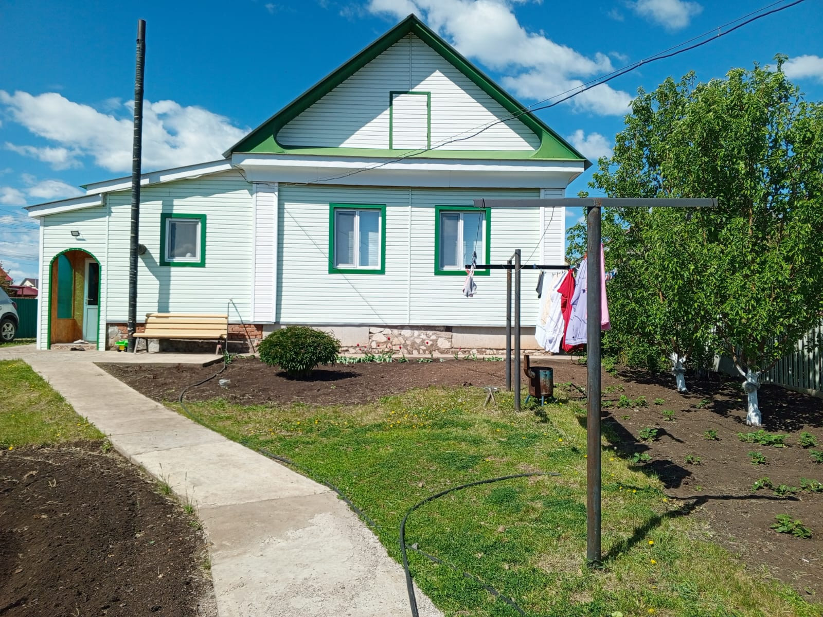 Имеется много насаждений. Все удобства в доме. Вода центральная, канализация, АОГВ. Дом очень уютный, светлый, теплый. Ремонт не требуется, заезжай и живи.