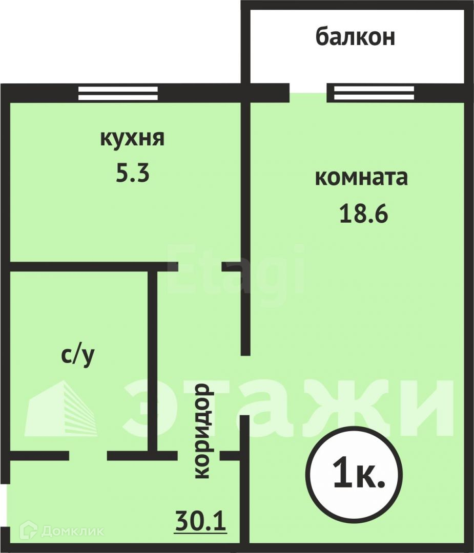 Балкон, лоджия 1 балкон