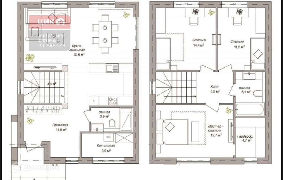 2.   три спальни