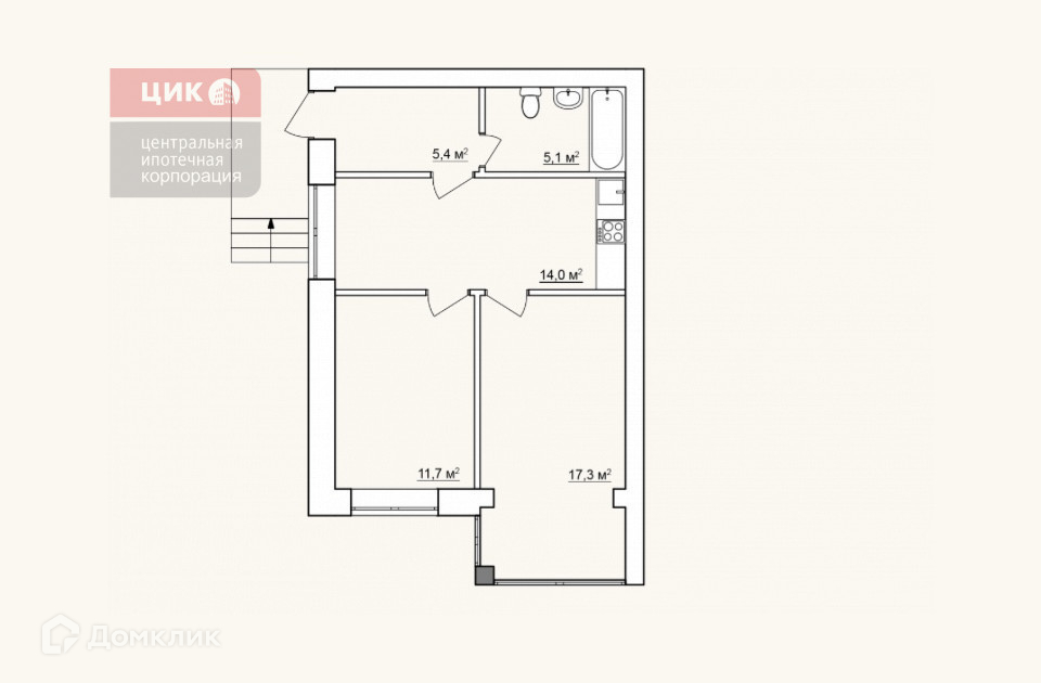 Общая площадь 53.5 м2