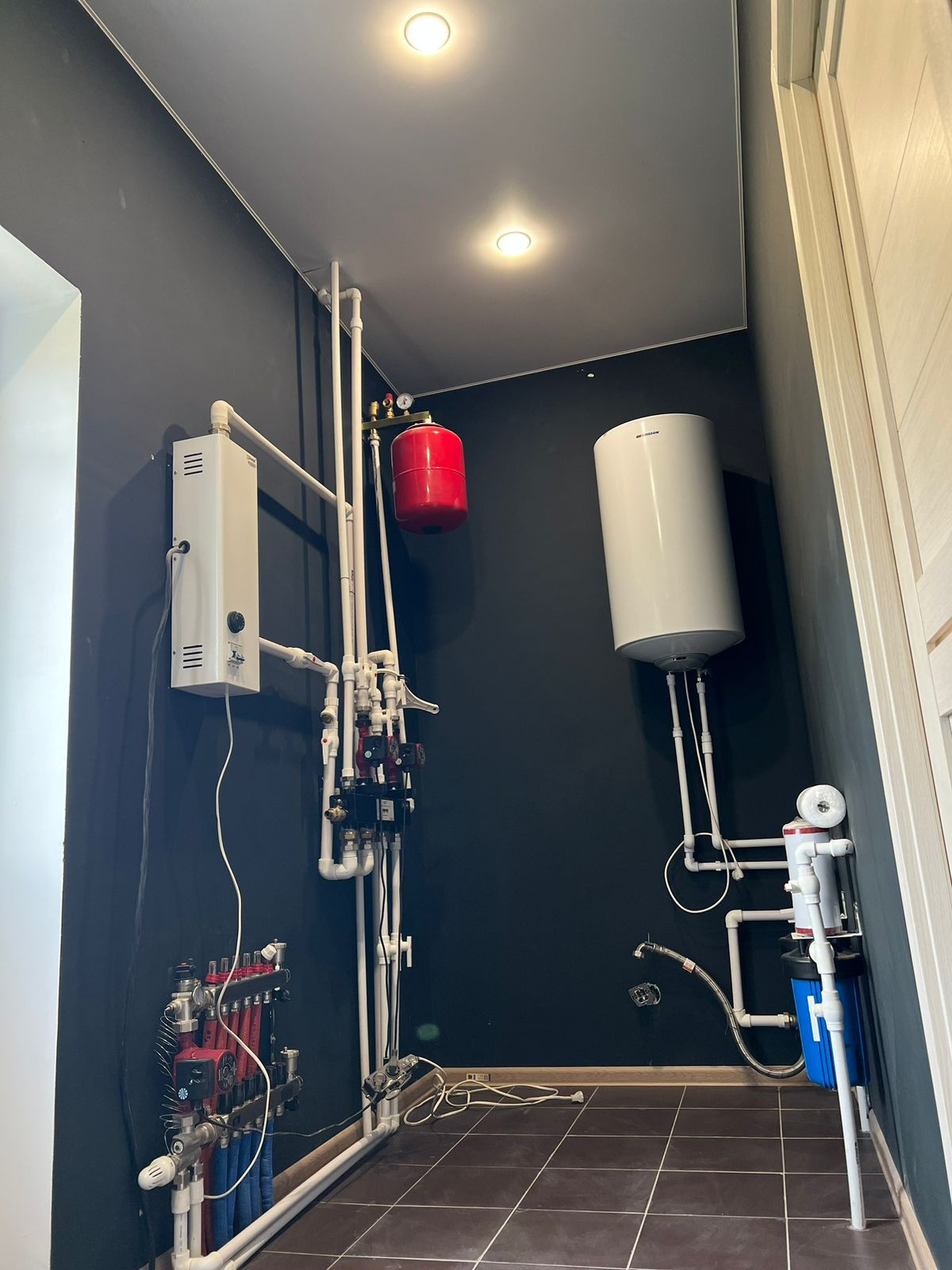 Коммуникации: теплый пол, батареи, вода в доме, канализация, свет.