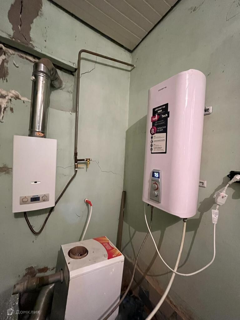 - В комнатах выровненные стены, пластиковые окна. Горячая вода от колонки. Отопление электрическое.