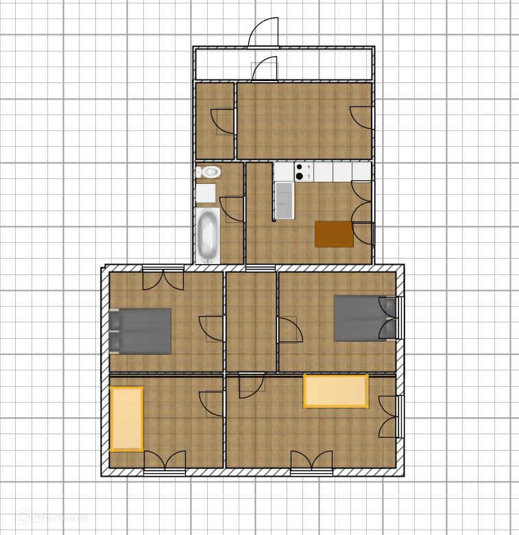 Жилая 45кв м (4 комнаты, одна проходная)