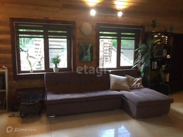 Предлагается к продаже дом из дикого вологодского сруба, неоцилиндрован, сосна. Сруб проконопачен, утеплён, обработан маслом. Площадь дома 220 квадратов. Площадь участка 12 соток. Участок огорожен забором, с откатными воротами. В доме электричество, центральный водопровод, газовое отопление, канализация - 2 выгребные ямы с переливом и откачкой. Почти весь первый этаж тёплый пол: в прихожей, туалете с душем, в ванной комнате, коридоре и гостиной. В спальне на первом этаже и двух комнатах на втором этаже отопление установлены радиаторы. Есть кондиционер. Дом очень тёплый, установлен двухконтурный котел. Пол на первом этаже керамогранит, на втором- ламинат. На первом этаже: гардеробная, туалет-душ, ванная комната, спальня, гостиная. На втором- 2 спальни и гардеробная комната.