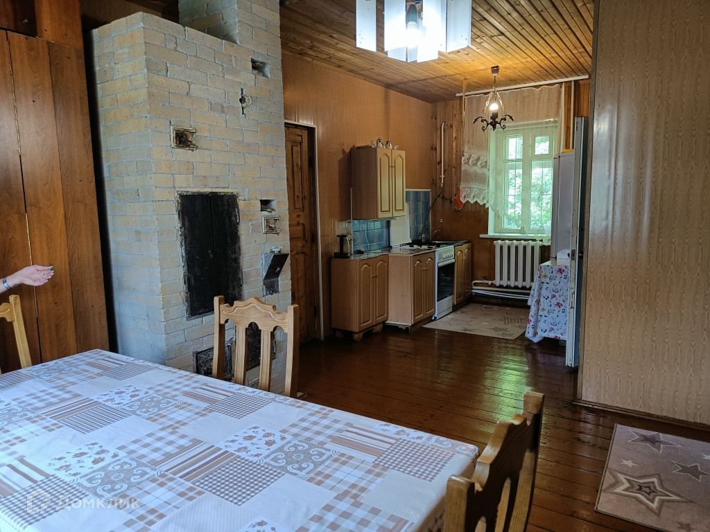 В доме большая кухня-столовая 18 метров, гостиная и спальня. Прихожая . Есть мансардный ( не отапливаемый этаж). Высокие потолки. Отопление от АОГВ, эл.водонагреватель на горячую воду. Санузел в доме. Канализация - выгребная яма.