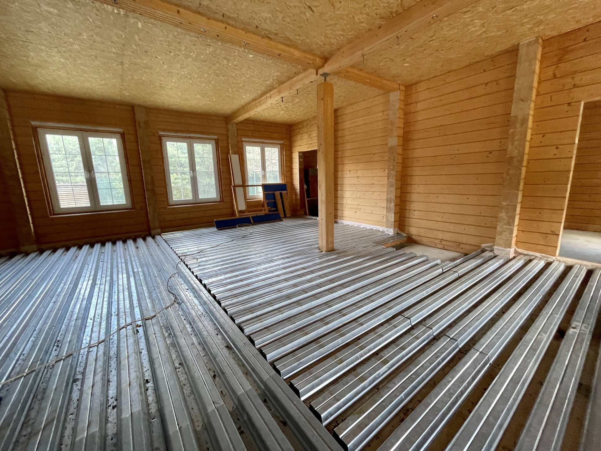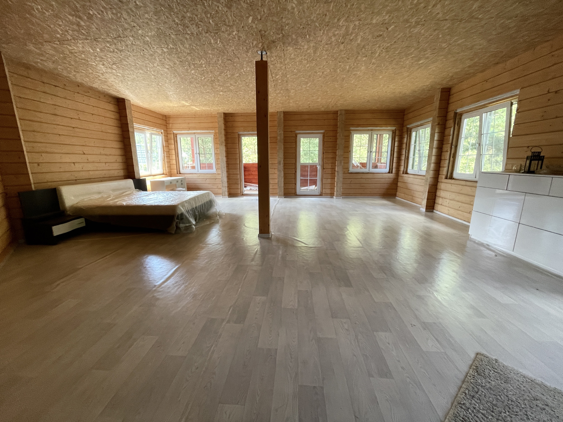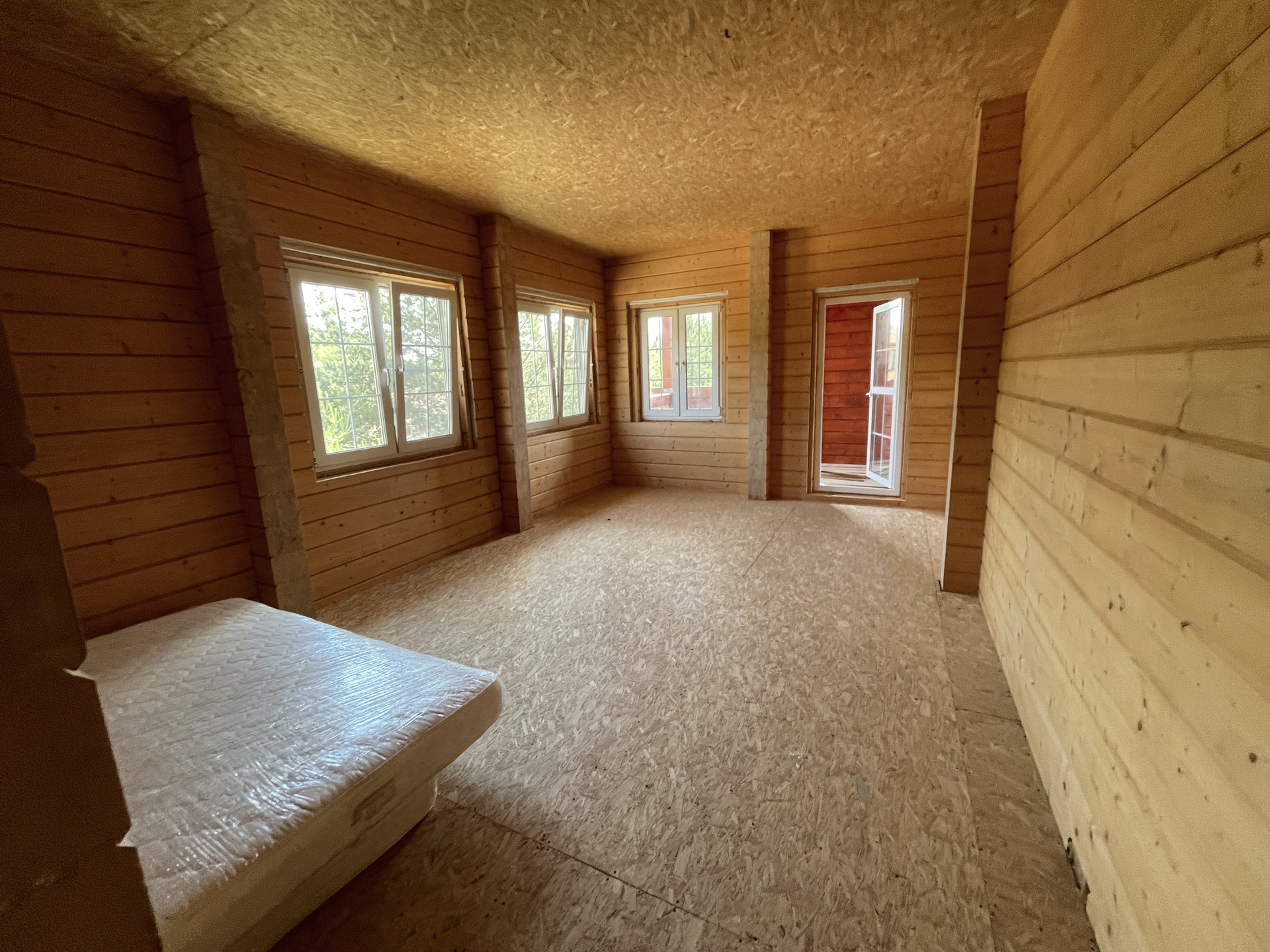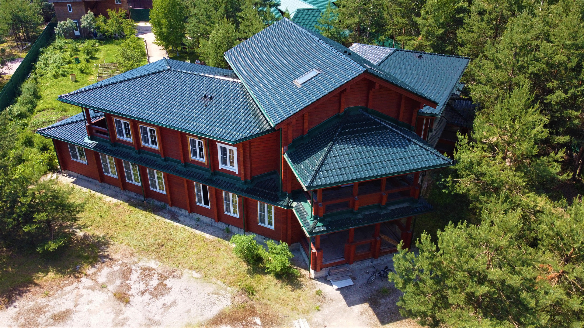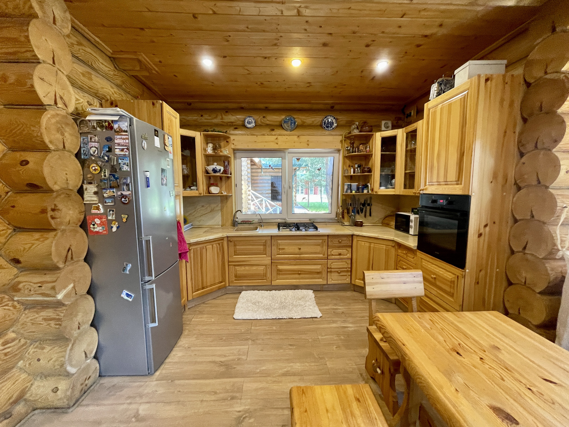 - Дом построен из клееного бруса камерной сушки максимально возможной толщины (200 мм). Строила дом компания GOODWOOD.