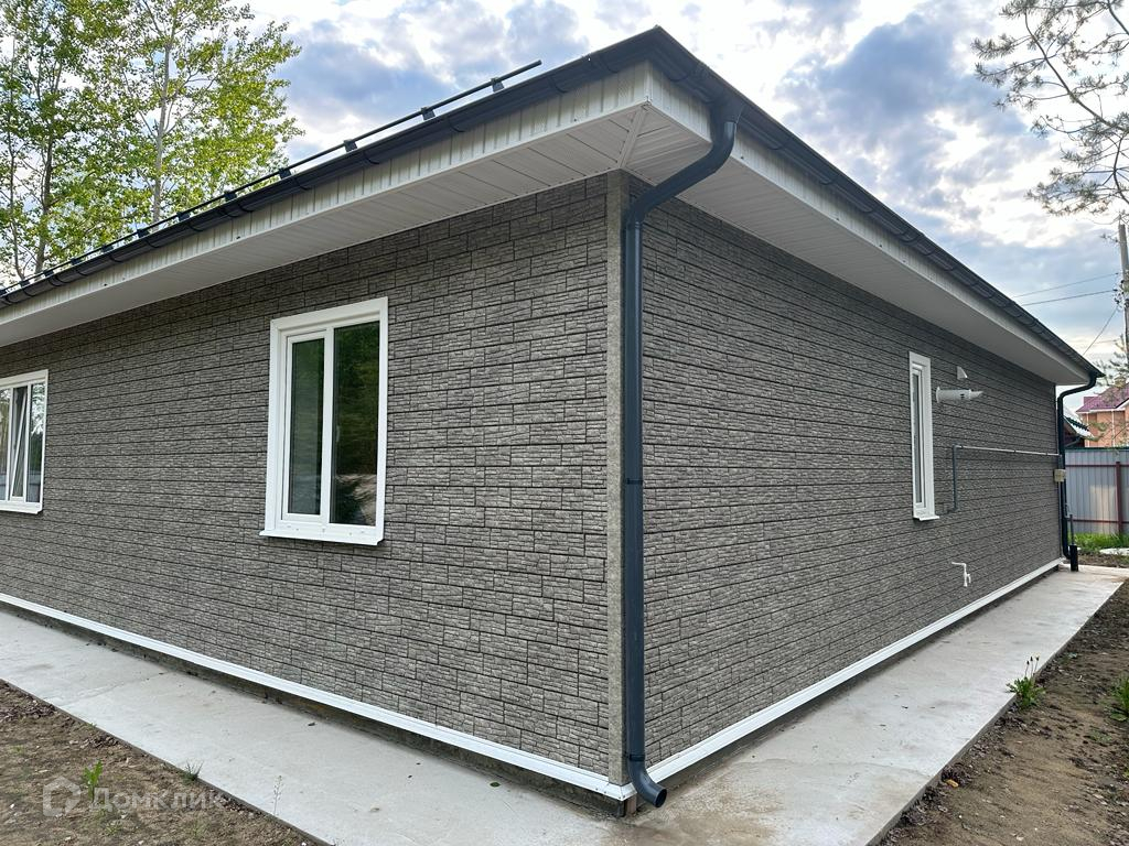 Фундамент представляет из себя монолитную железобетонную плиту сечением 700 мм и утеплённый ЭППС 100 мм, стены выполнены из газосиликатного блока bonolit 300мм, утеплены каменной ватой 100 мм, фасад - сайдинг, крыша из металлочерепицы, утепление 200 мм, окна Rehau. К дому подведены все коммуникации, которые включают в себя магистральный газ, канализацию, водопровод и электричество.