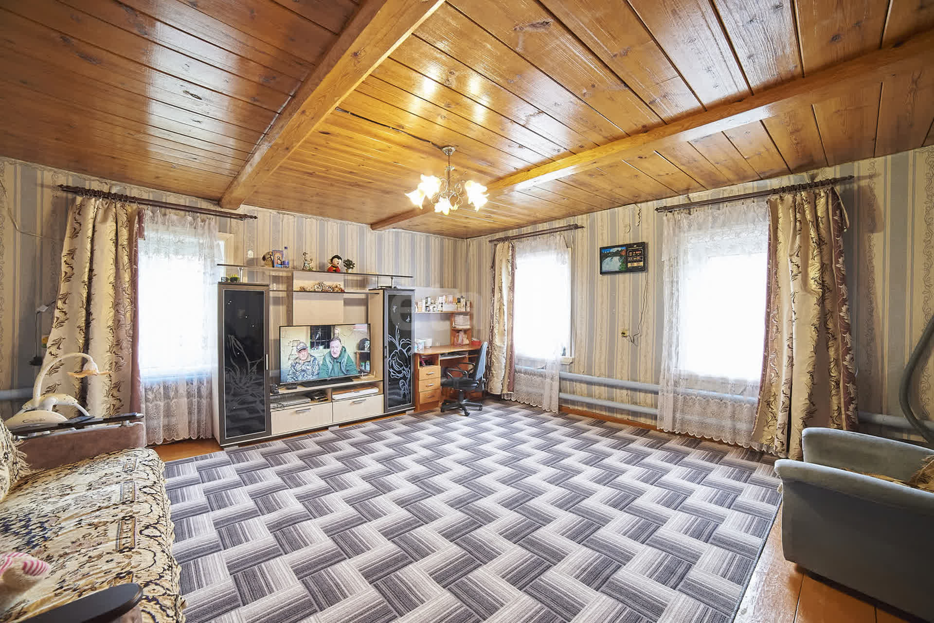 Продаётся ДОМ НА 2 ХОЗЯИНА. Общая площадь 86,7; отапливаемая 72,5; В доме холодная и горячая вода, газовое отопление, санузел совмещённый, канализация. В доме есть подпол и большой сухой погреб возле дома. На участке построена новая баня, есть сарай. В доме четыре спальни, имеет бревенчатые стены, большая экономия газа на отопление. Большой двор. На участке земля обработана, имеются насаждения. До города 5 минут езды. Свежий воздух