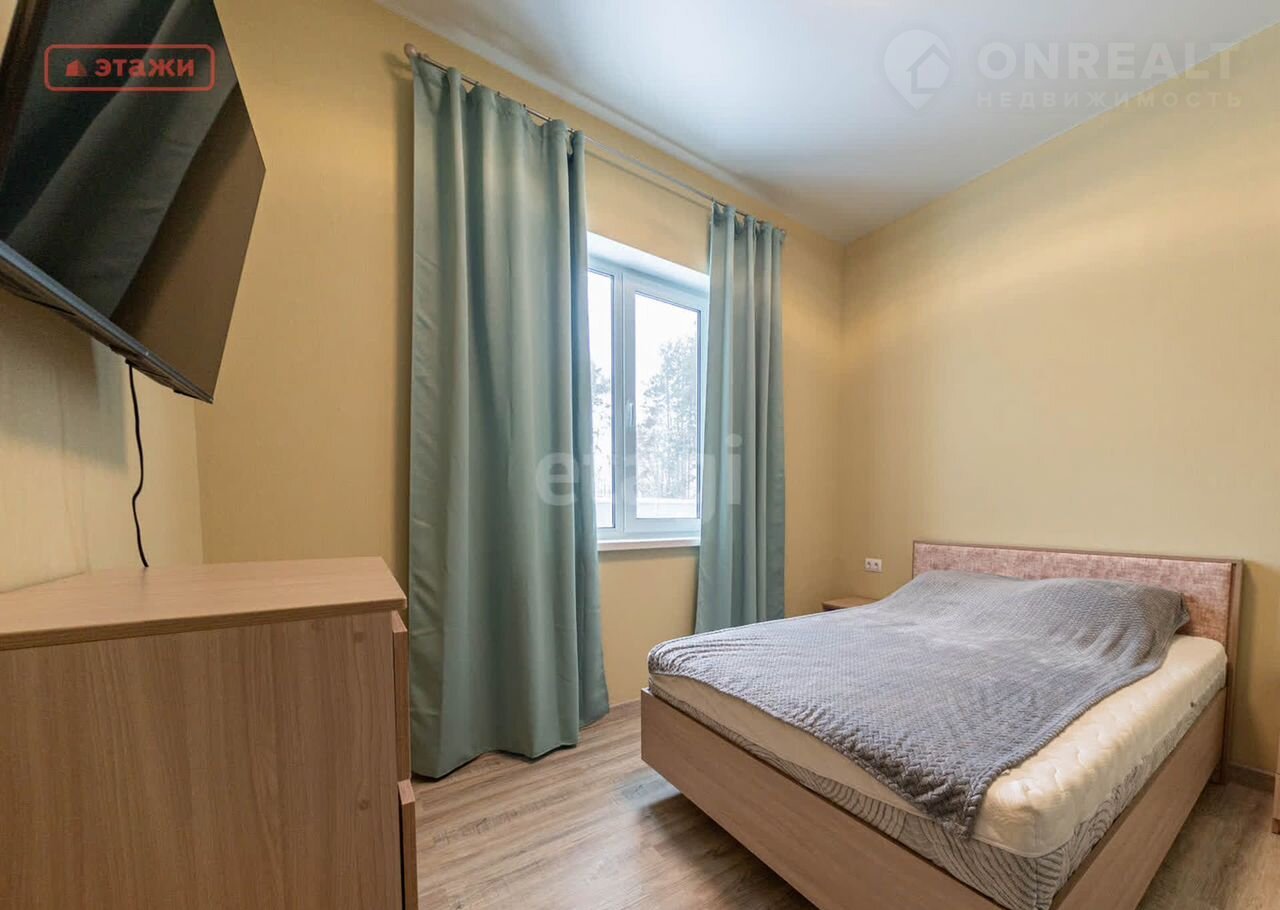 Планировка дома включает: просторная кухня-гостиная 27 кв.м. с выходом на террасу, две комнаты 13,2 кв.м. и 11,4 кв.м. , гардеробная 7,9 кв.м. совмещенный санузел 5,8 кв.м., тех.помещение,высота потолков 2,8 м.