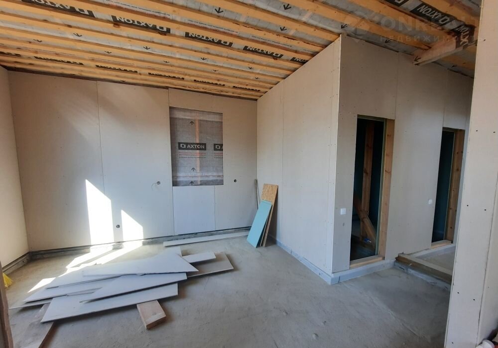 — Каркас дома усиленный, снаружи обшит обработанной имитацией бруса, внутри утеплитель РАRОС толщиной 20 см., снаружи закрыт ветровлагозащитной мембраной и изнутри пароизоляцией, внутренняя отделка выполнена гипсокартоном на обрешетке.