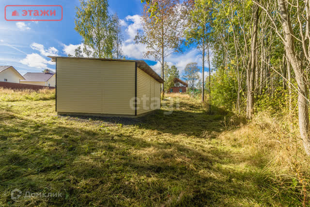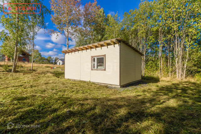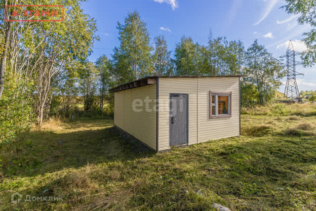На участке небольшой каркасный дом 35 кв.м. (оформлен как жилой, в собственности).