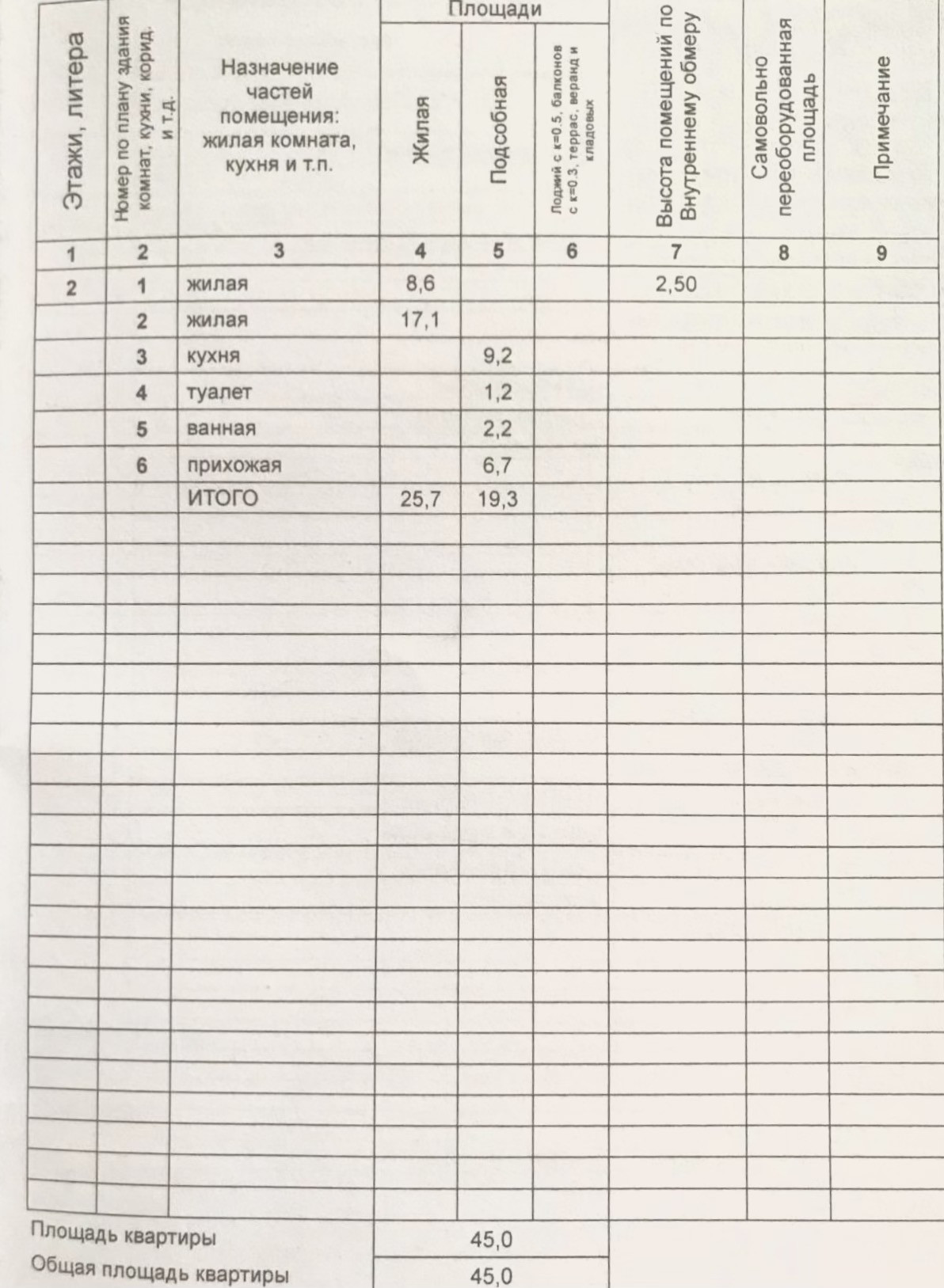 Общая площадь 45 м2