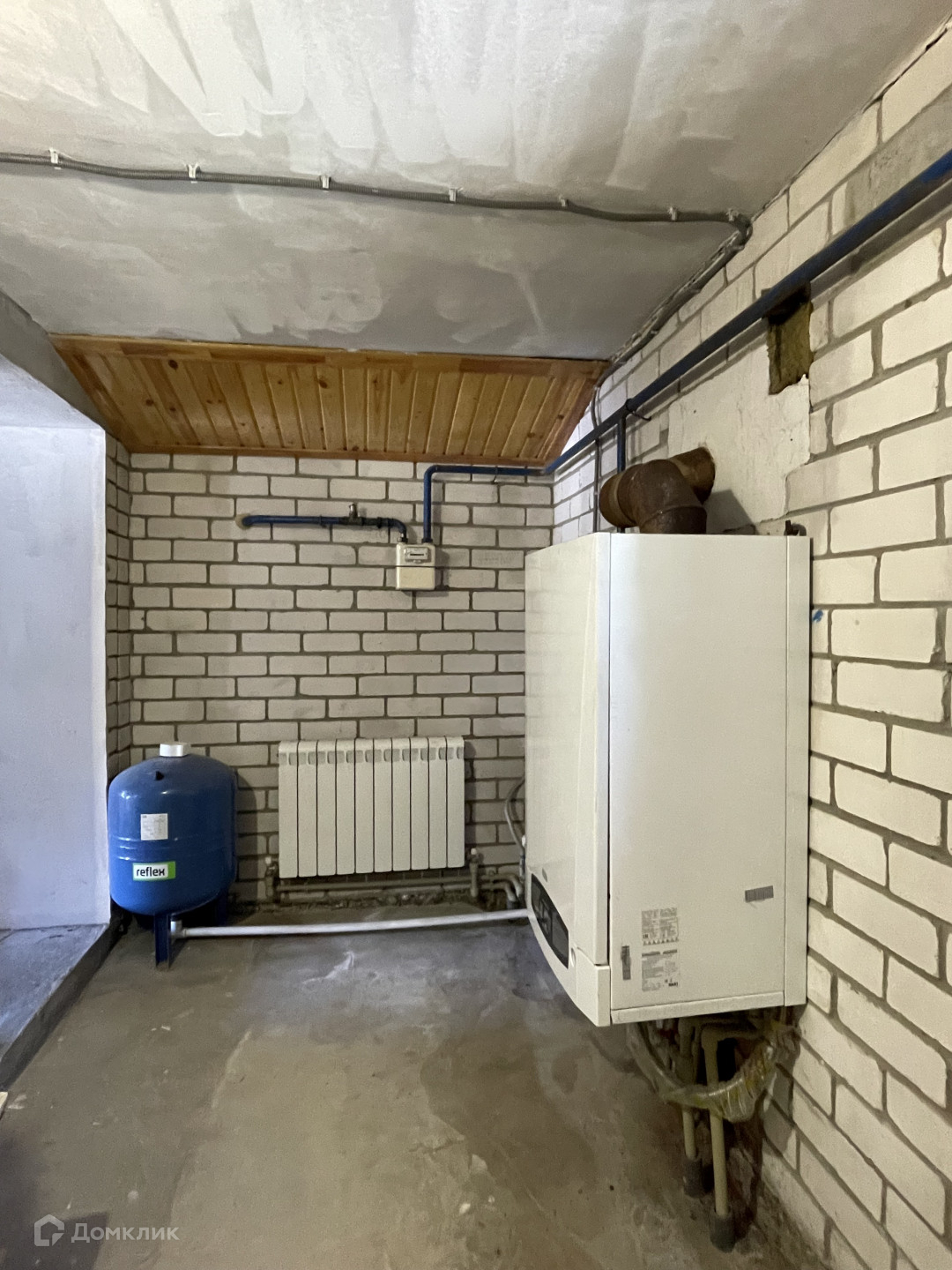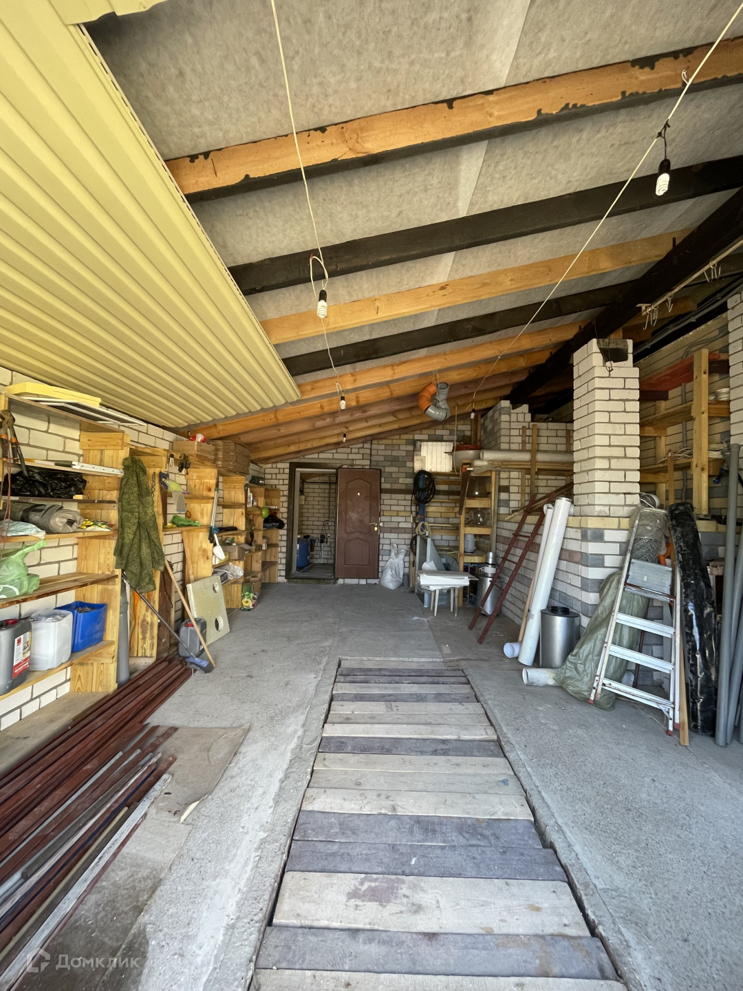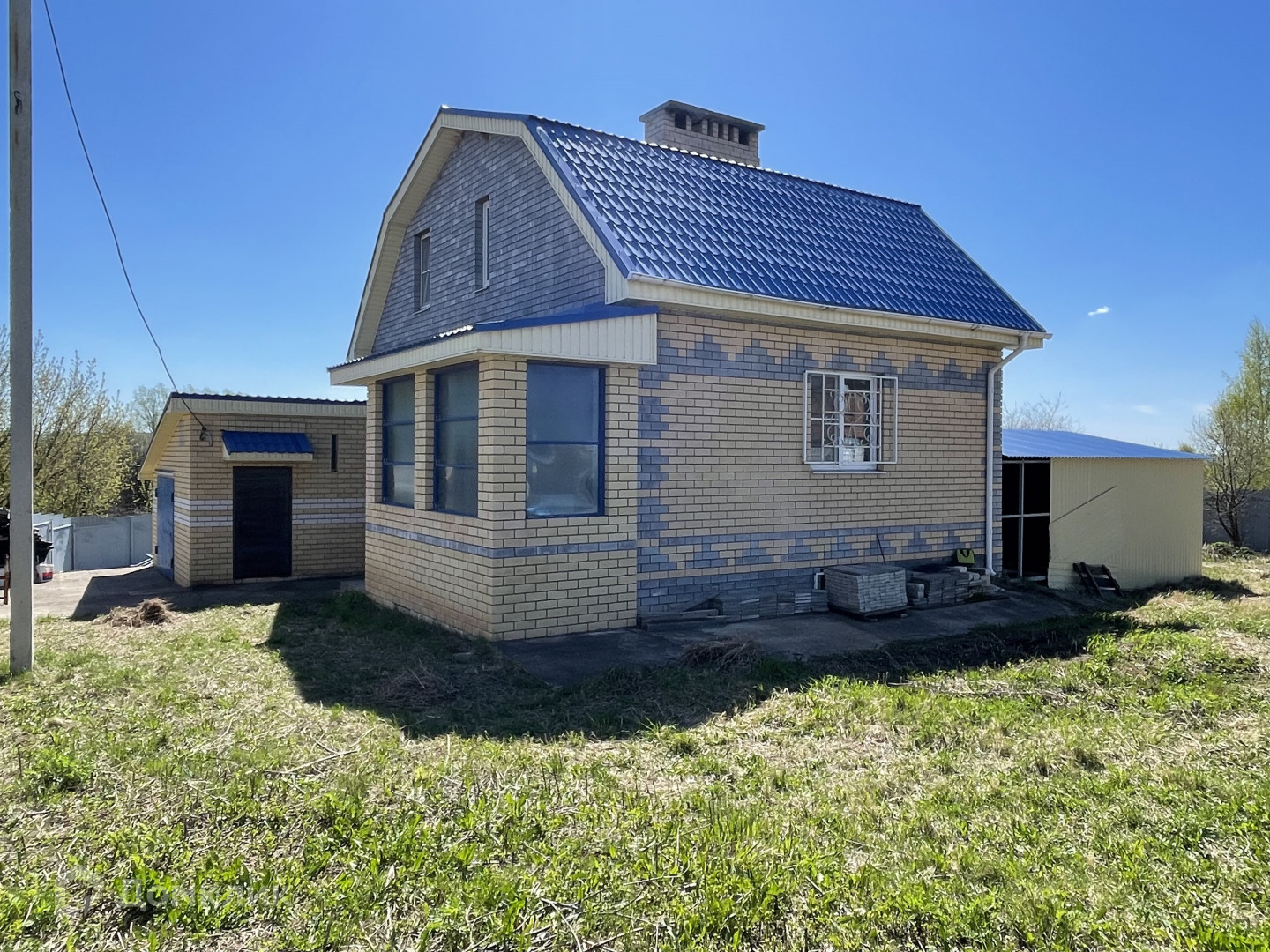 Дом кирпичный, перекрытия железобетонные, чистовая отделка. Имеется полноценный цокольный этаж. На первом этаже кухня-гостиная, санузел, на втором этаже две спальни, в цоколе комната, санузел, вспомогательные помещения. Гараж с смотровой ямой и местом для хранения заготовок, котельная.