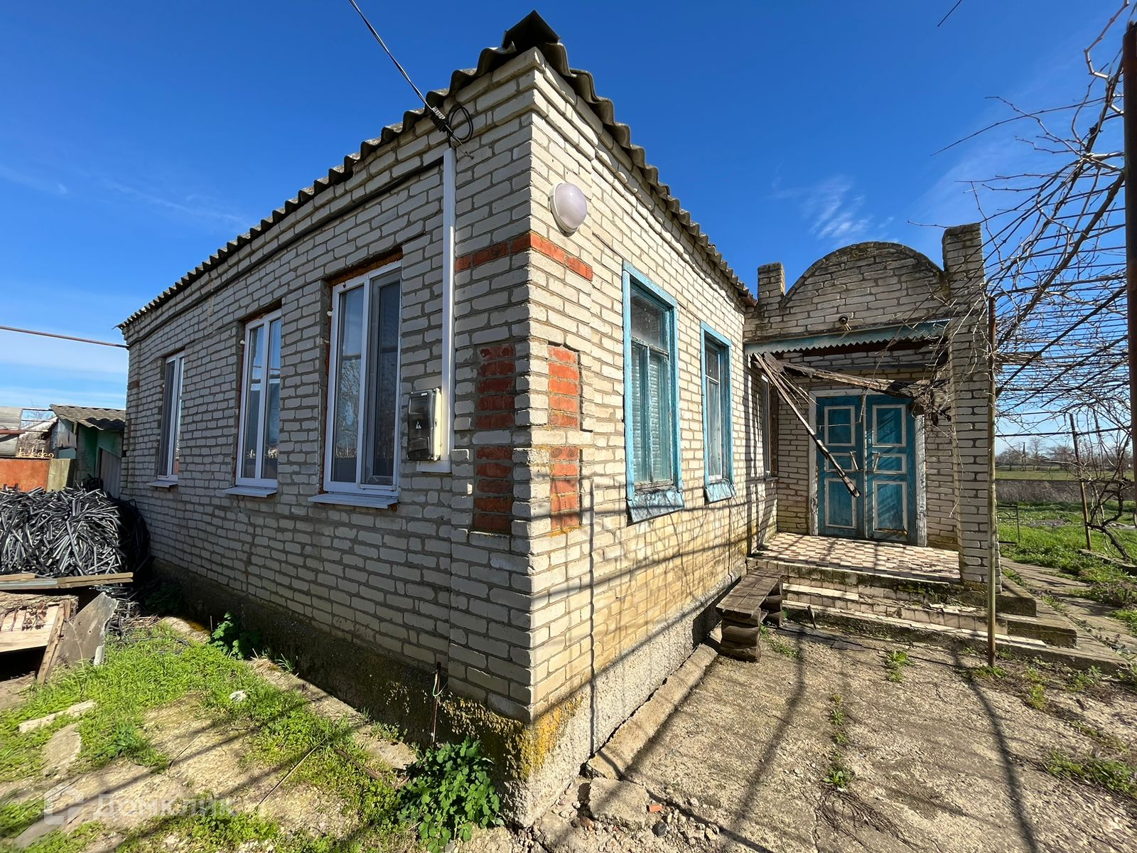 На участке расположено 2 дома (саманный и кирпичный). Кирпичный дом состоит из 3 жилых комнат, котельной и санузла. Дом требует ремонта.