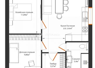 Общая площадь: 56 м2