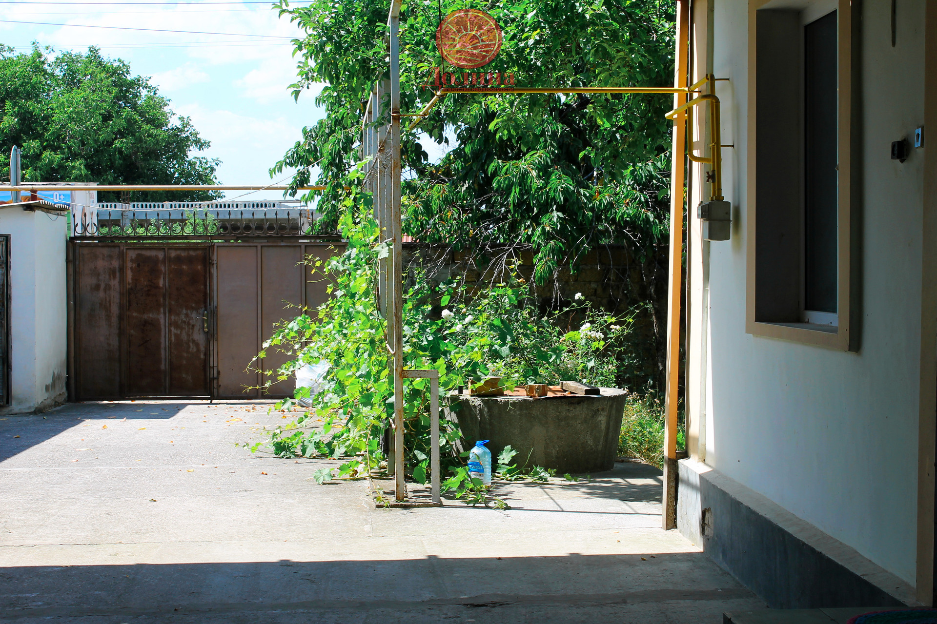 На участке растет яблоня, вишня, виноград, абрикосы.