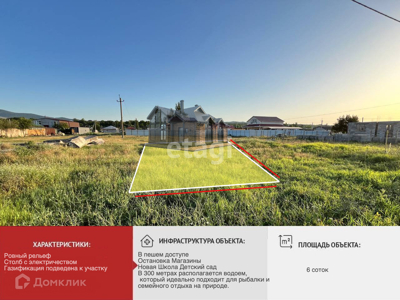 Идеальное место для вашего нового дома, с. Заречное! Прекрасный земельный участок площадью 6 соток, расположенный в живописном селе Заречное на улице Лавандовая, так же продается смежный участок 7,4 сотки - на выбор ! Участок огорожен по периметру: с двух сторон – из профнастила. Стoлб с элeктpичeством рядoм c учacткoм , гaзификaция пpoxодит пo улице, чтo пpедостaвляeт отличные вoзмoжнoсти для газификaции. Особенности участка: Ровный рельеф: Участок имеет ровную поверхность, что идеально подходит для строительства. Инфраструктура: В пешей доступности находится транспортная остановка, обеспечивающая удобное сообщение с городом.В поселке есть школа и детский сад, что делает участок идеальным для семей с детьми. Близость к водоему: В 300 метрах располагается водоем, который идеально подходит для рыбалки и семейного отдыха на природе. Этот участок – отличное место для тех, кто ценит спокойствие и природу, но при этом не хочет отказываться от удобств городской жизни. Не упустите возможность стать владельцем этого замечательного участка! Для получения дополнительной информации и организации просмотра, пожалуйста, свяжитесь с нами! Код объекта:11240273 Доп. описание: водоснабжение: скважина