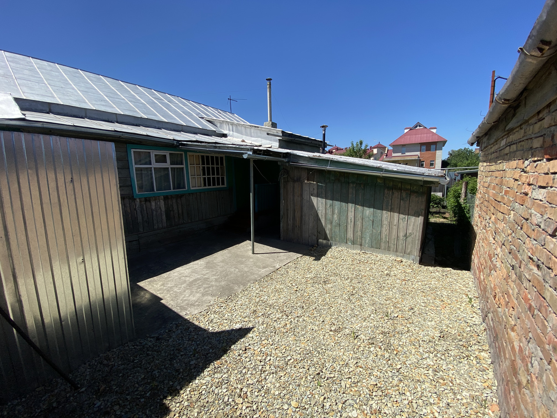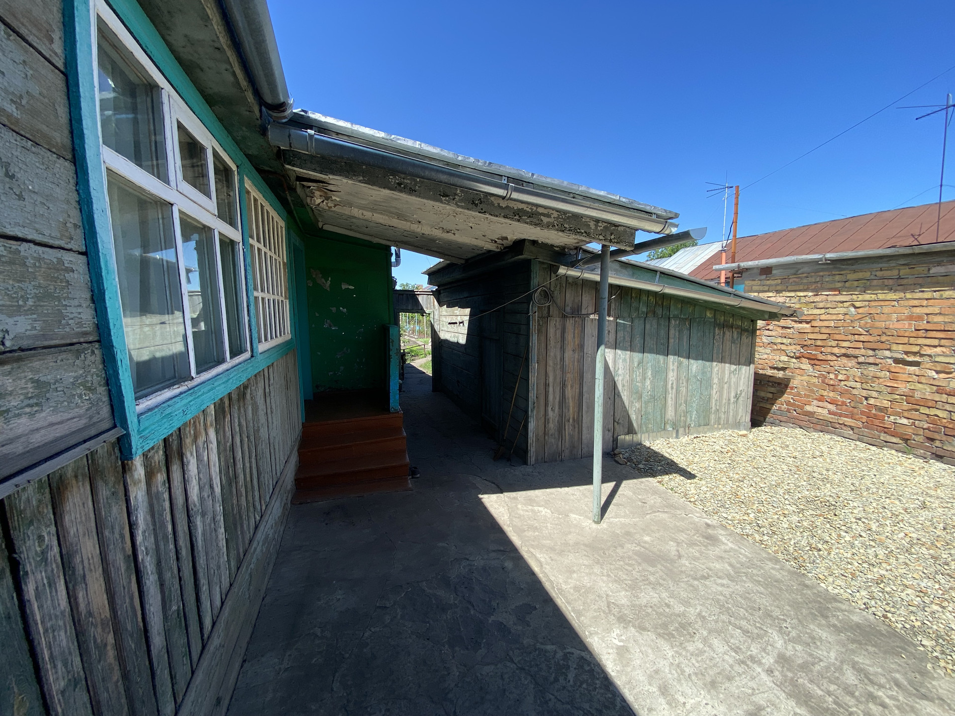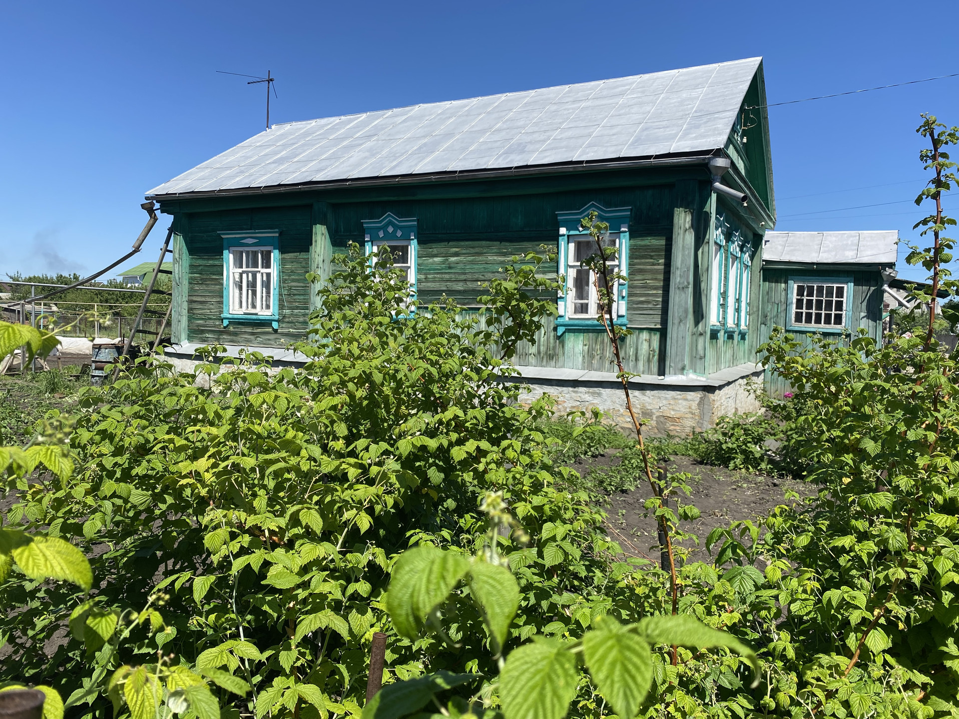 Материал стен - бревно. Крыша покрыта металлом.