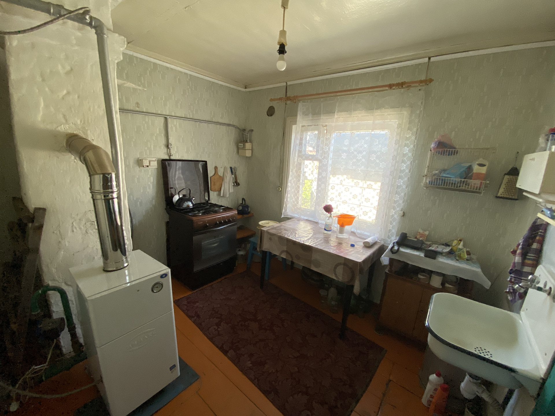 Установлены чугунные радиаторы, газовый котёл на отопление.