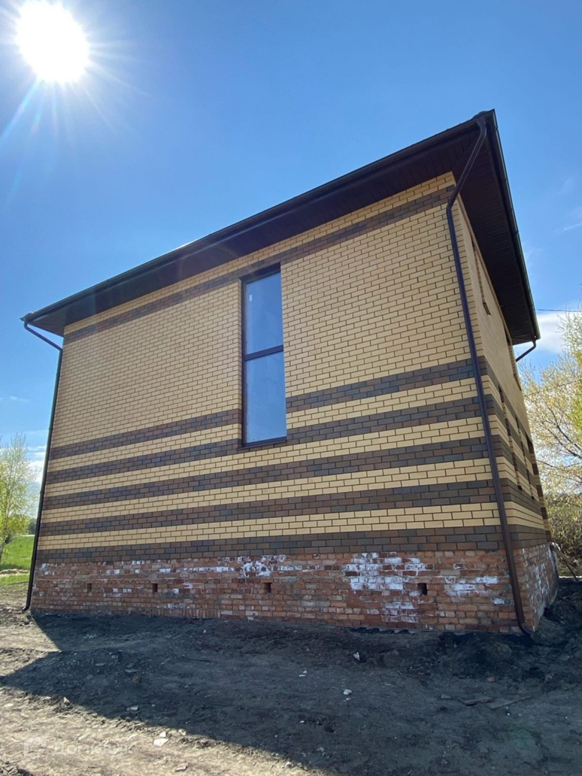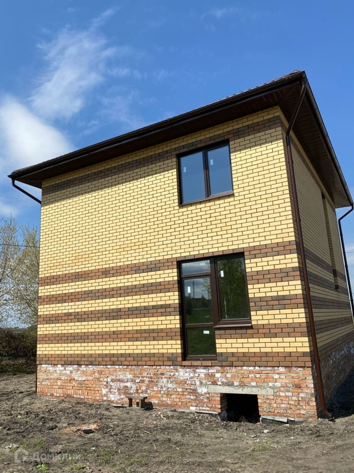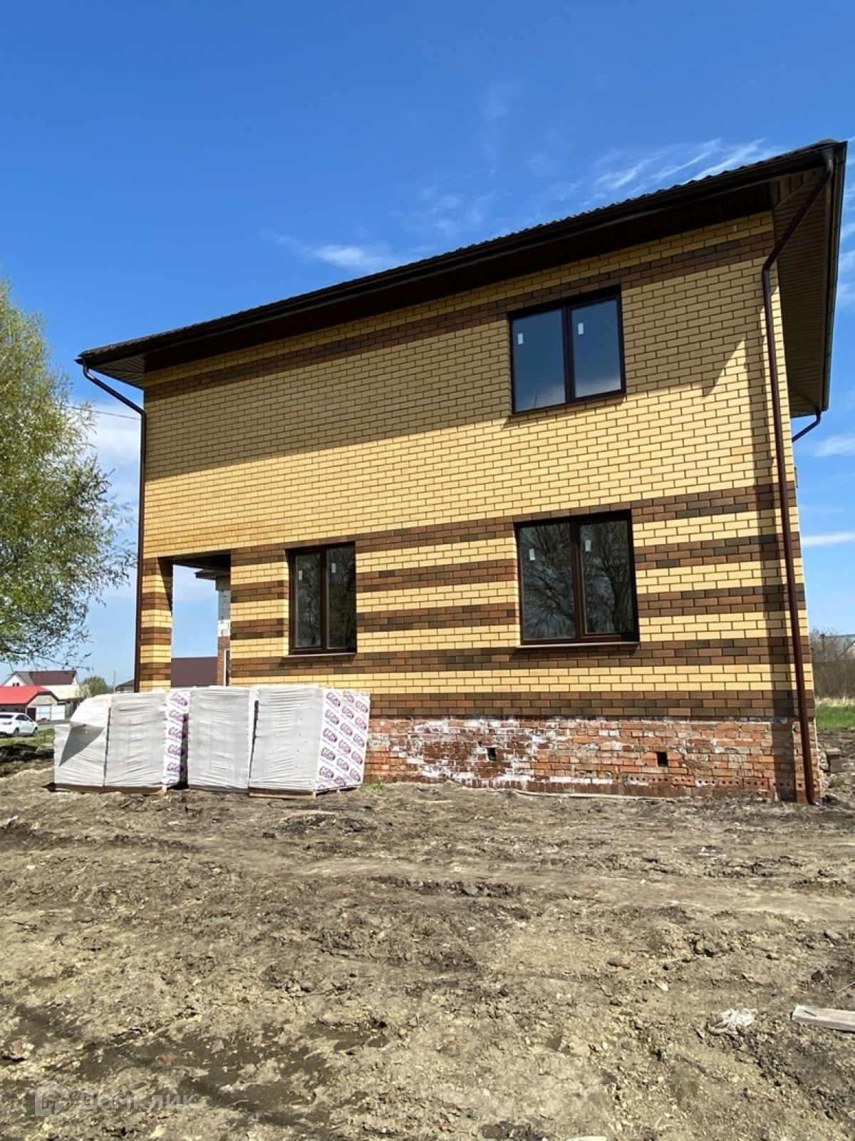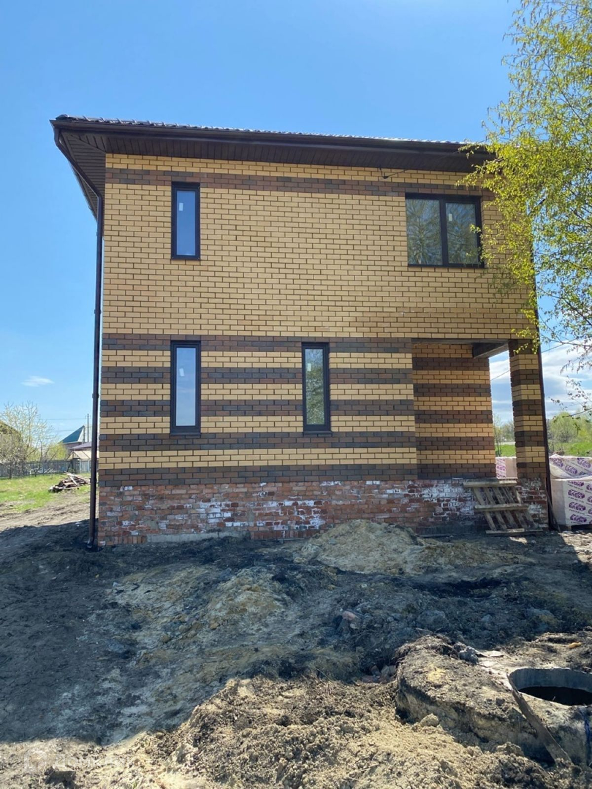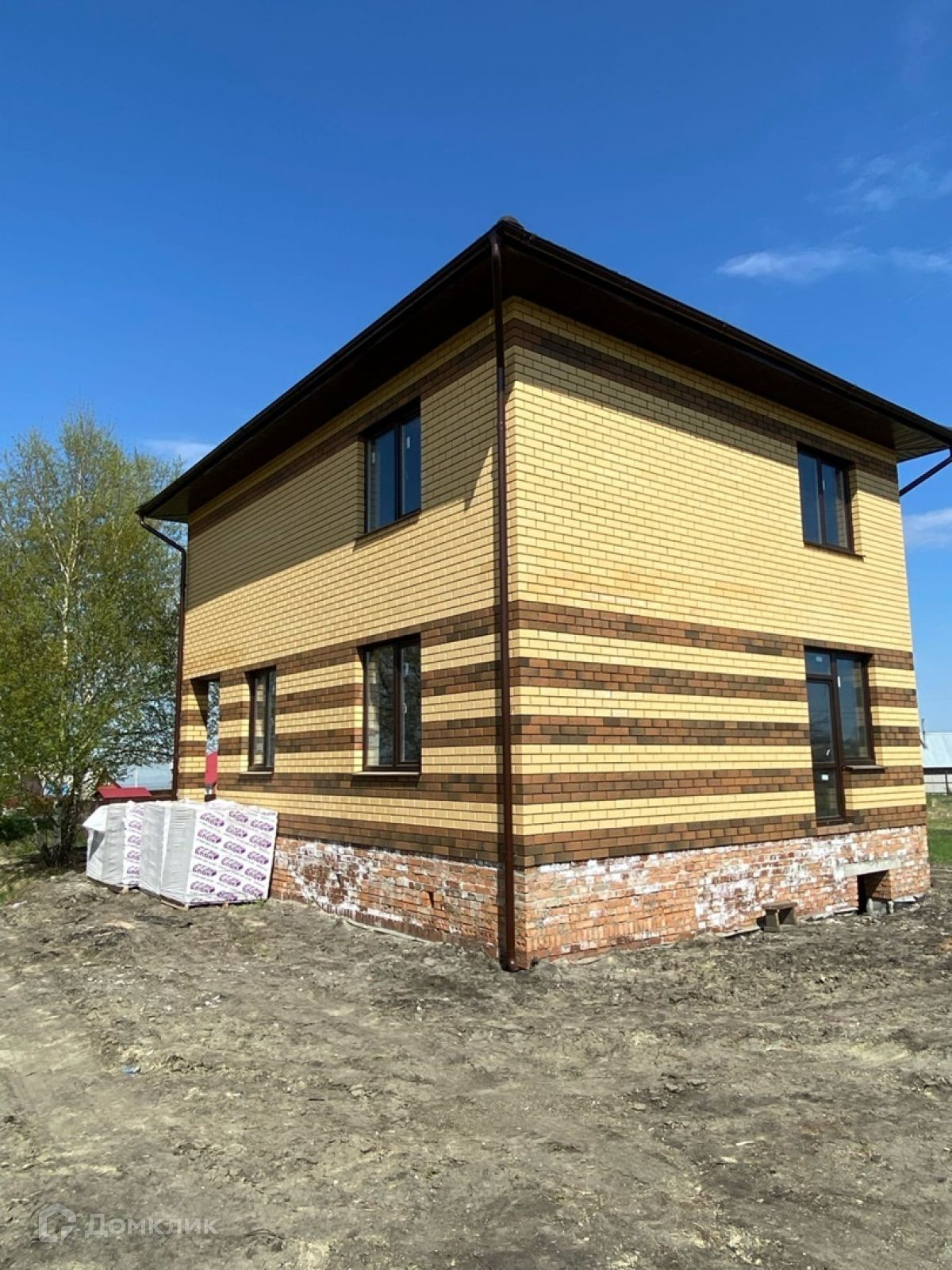 В доме до предчистовая отделка. Основание глубиной 1,7 метра – 2 ряда ж/б фундаментных блоков ФБС-4 уложены на бетонную армированную подушку сечением 900/250 мм. (ширина/толщина) + кирпичной кладкой выведен очень высокий цоколь над уровнем земли на 80 см.