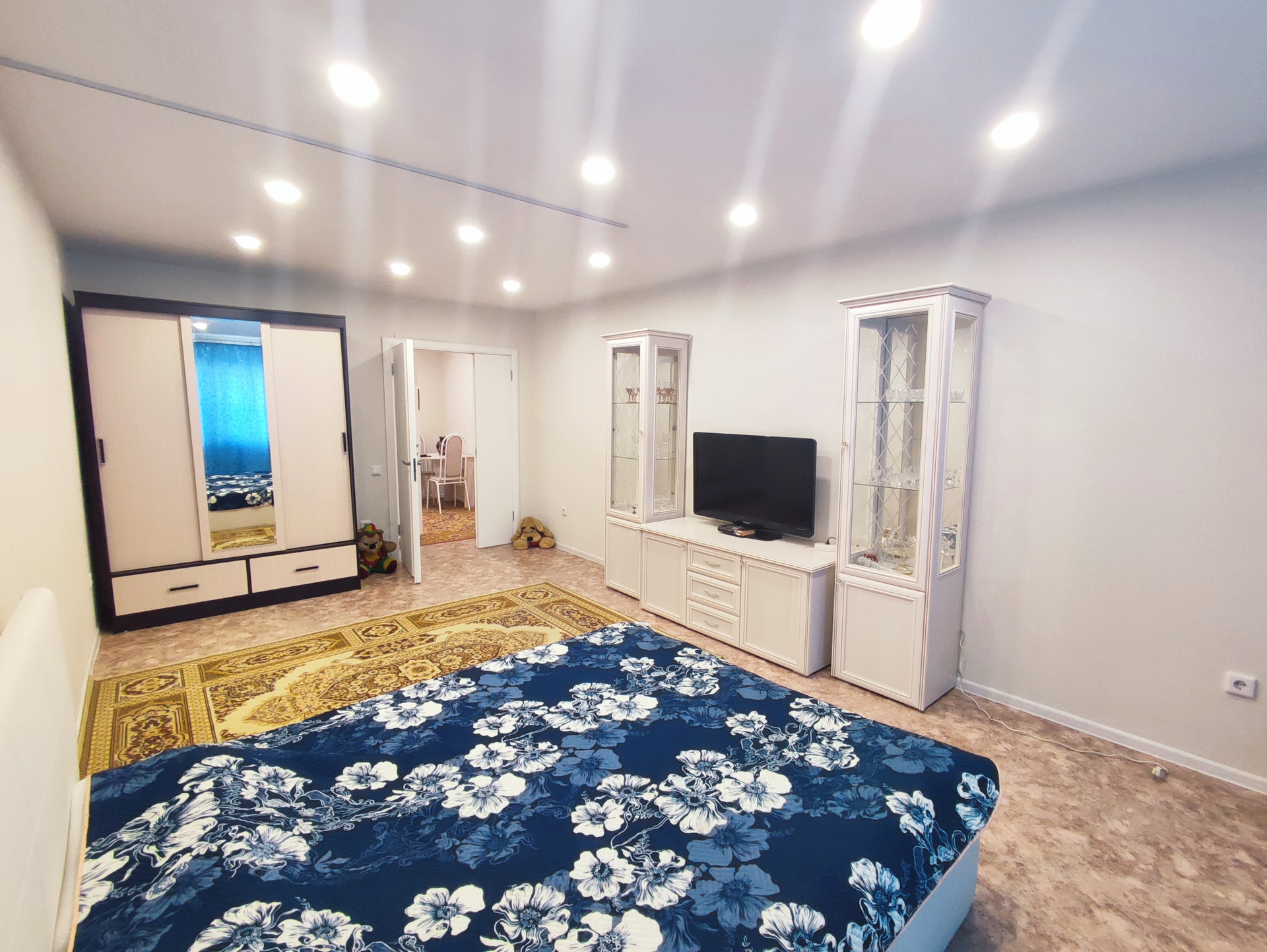 Состояние квартиры - отличное: пластиковые окна, натяжные потолки, современные обои, пол - линолеум, входная металлическая дверь. Лоджия застеклена пвх и утеплена, теплый пол. Тамбур перед квартирой.