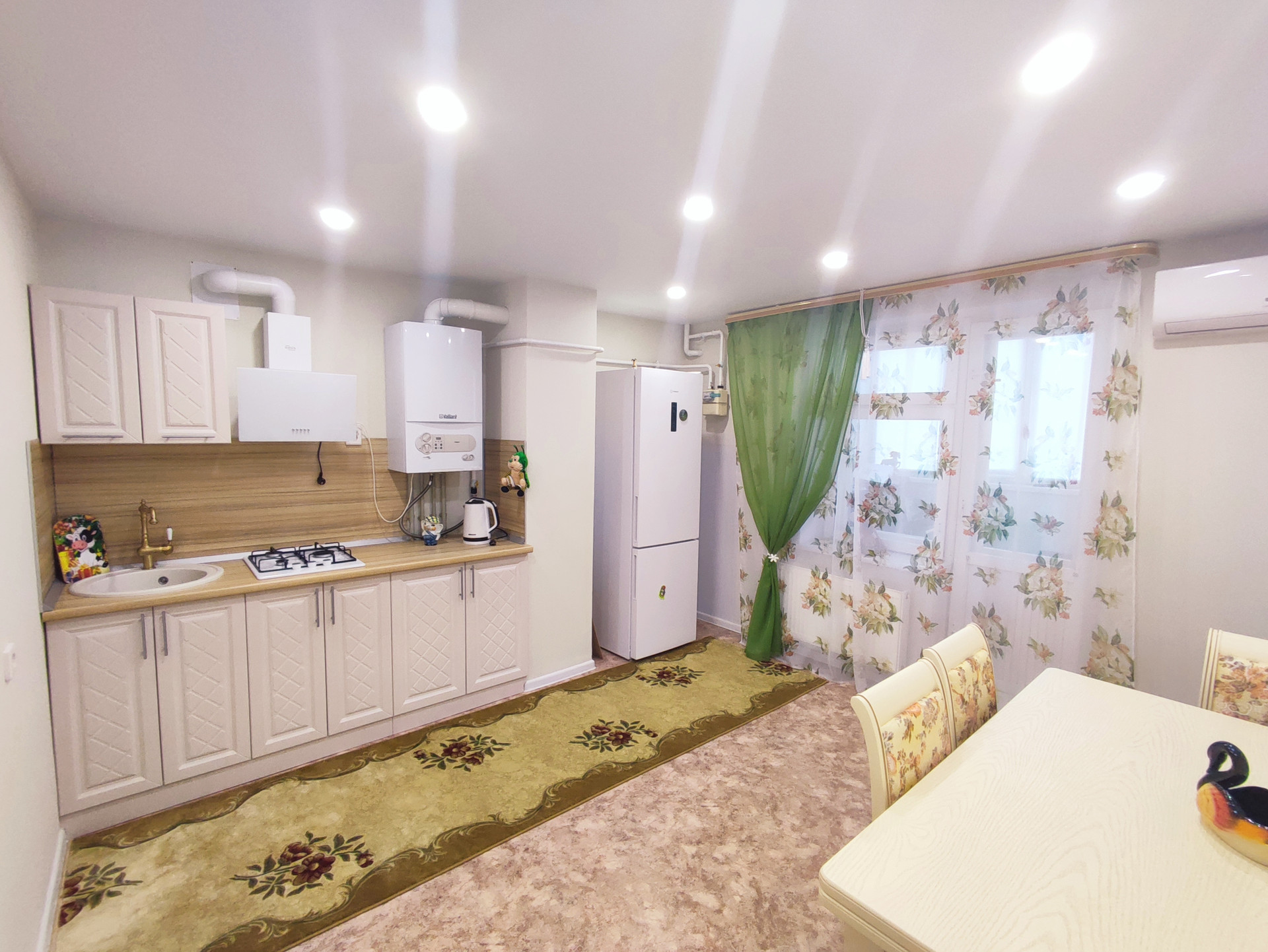 Огромный плюс - в квартире индивидуальное отопление - низкие коммунальные платежи. Установлен качественный 2-контурный котел с датчиком температуры.