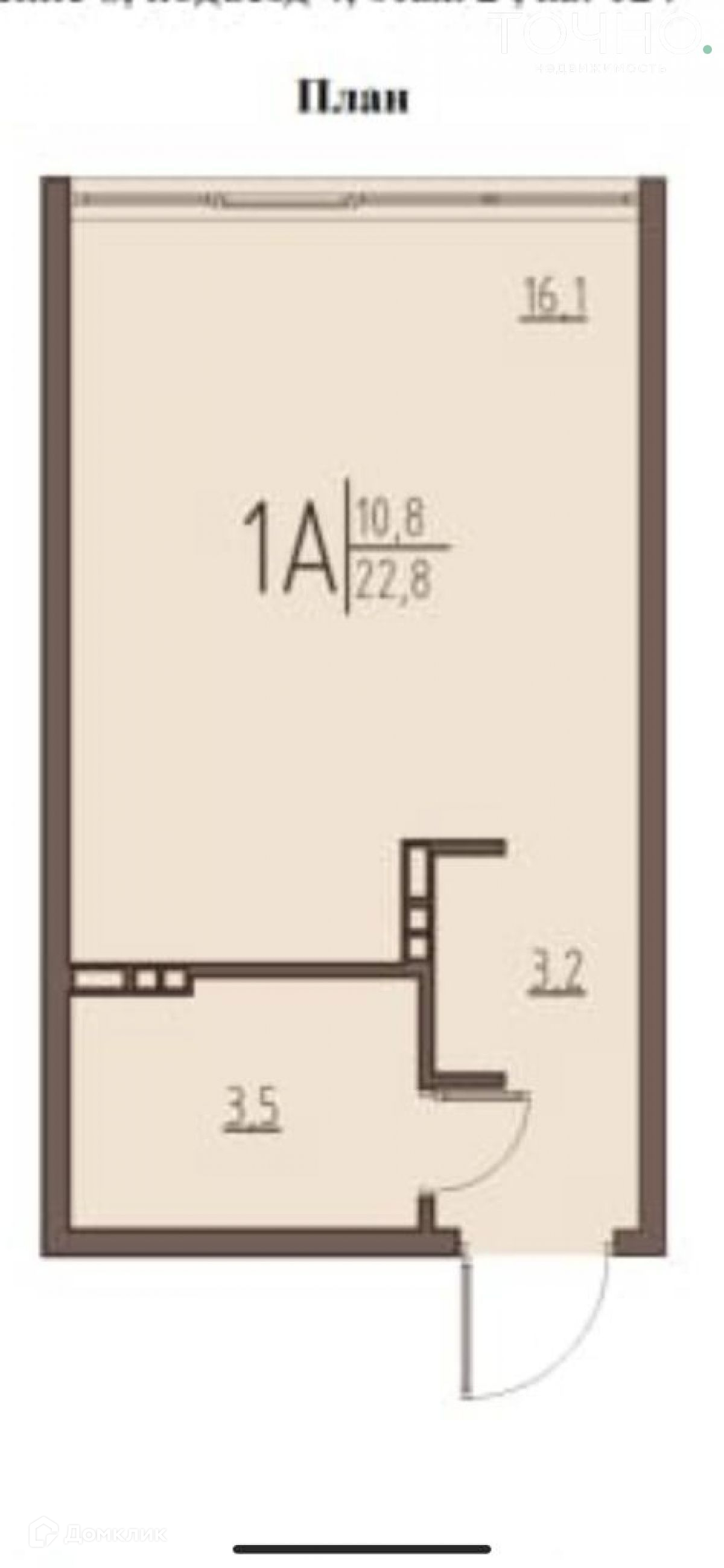 Общая площадь 22.8 м2